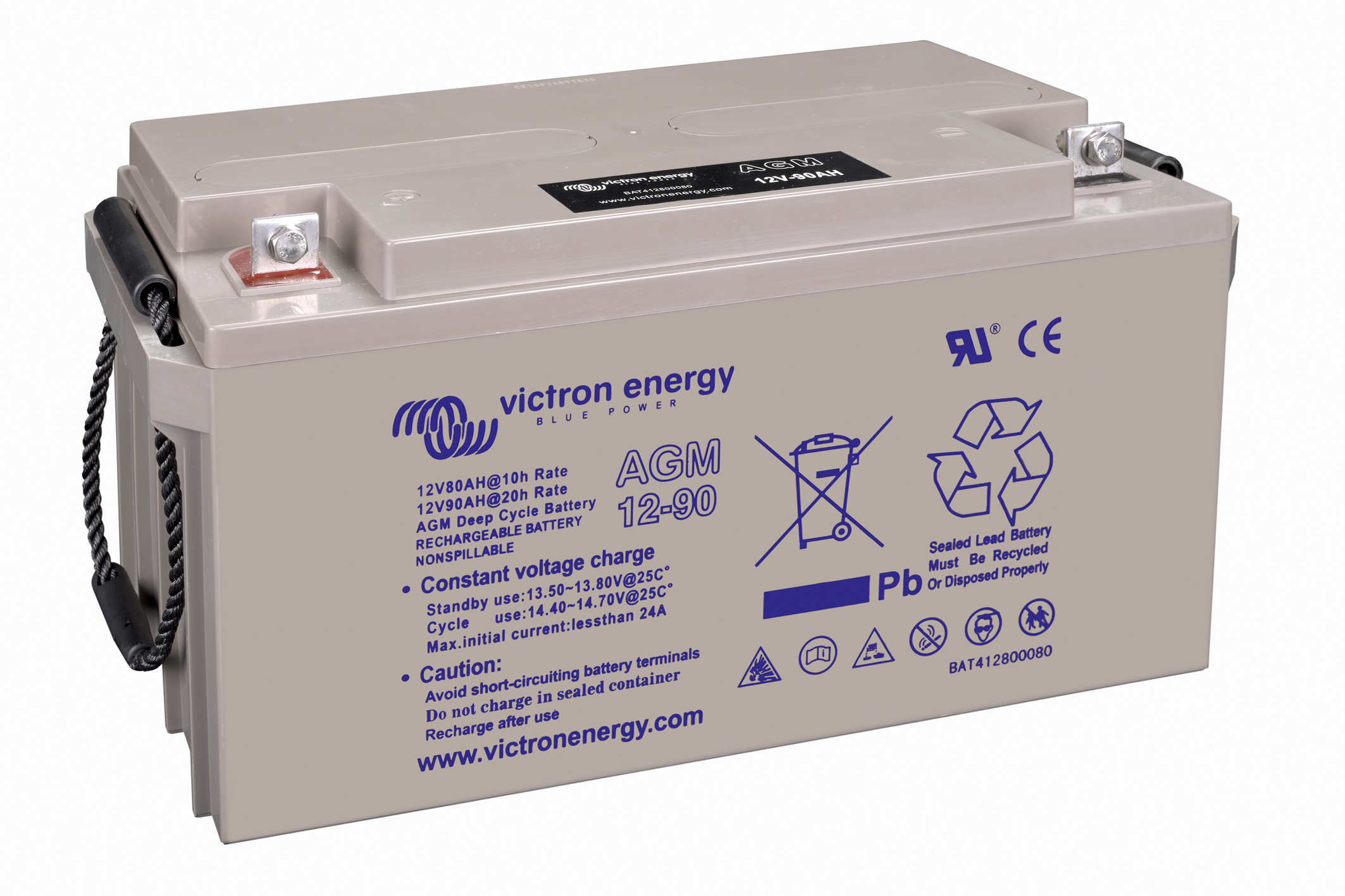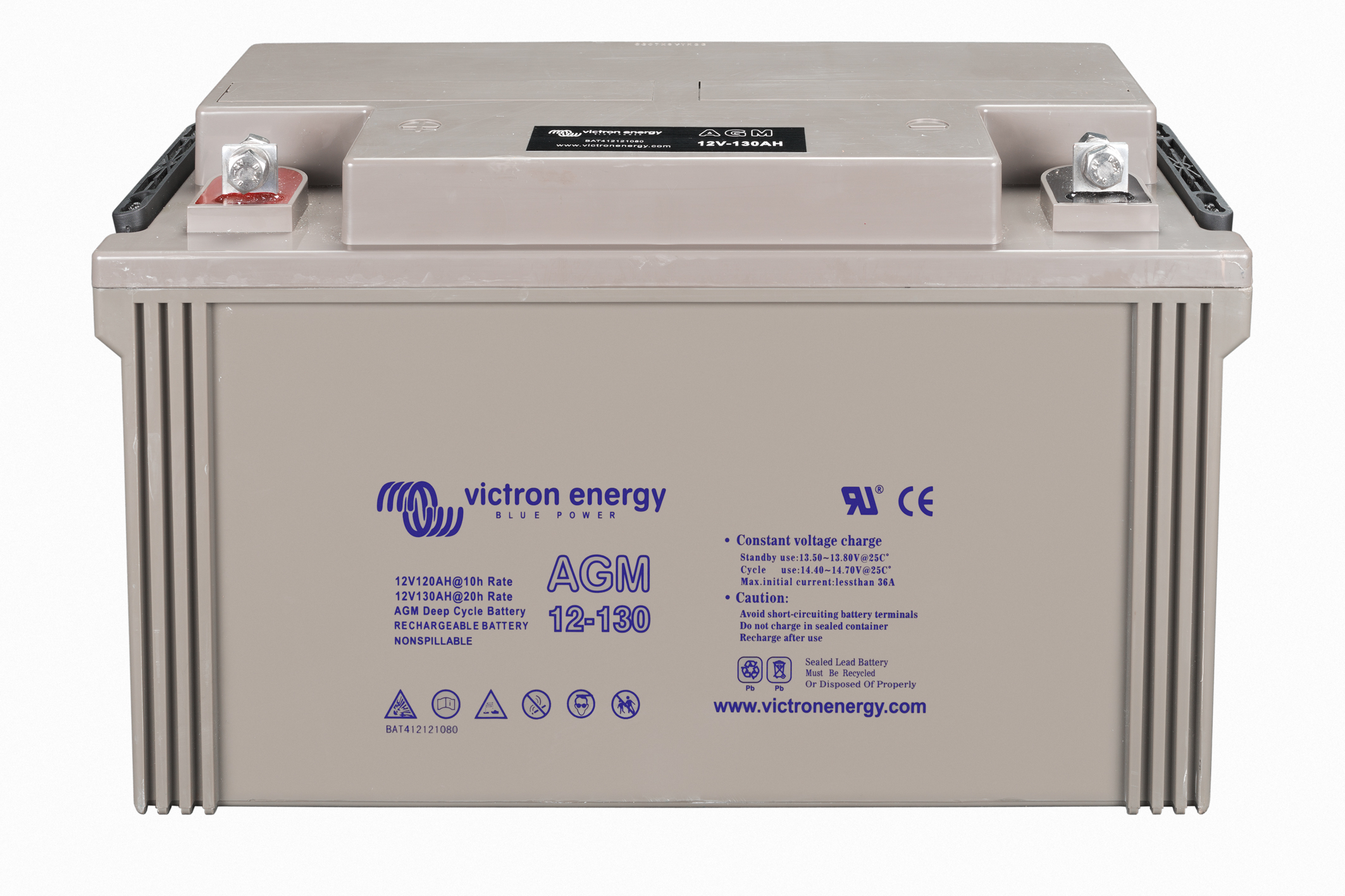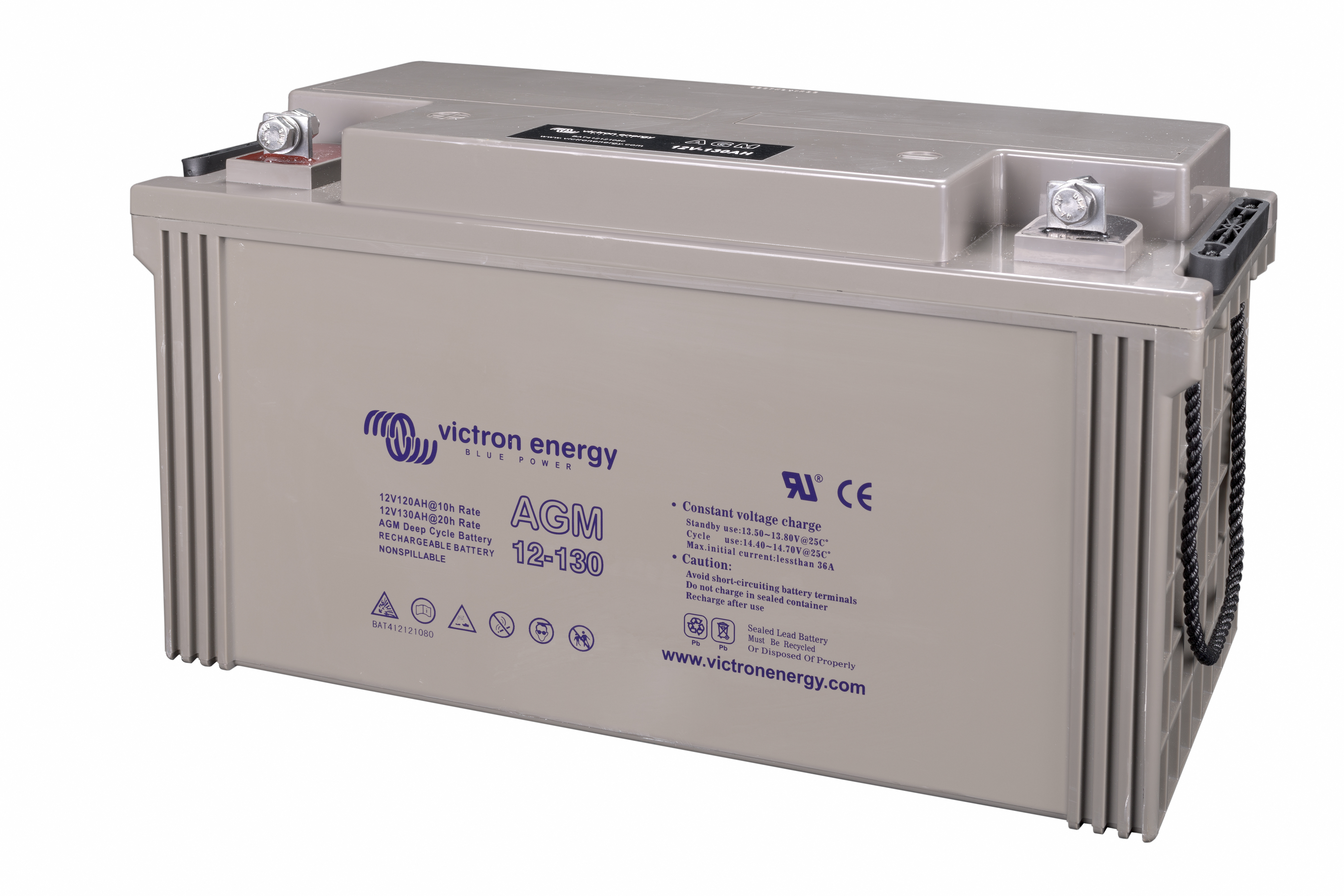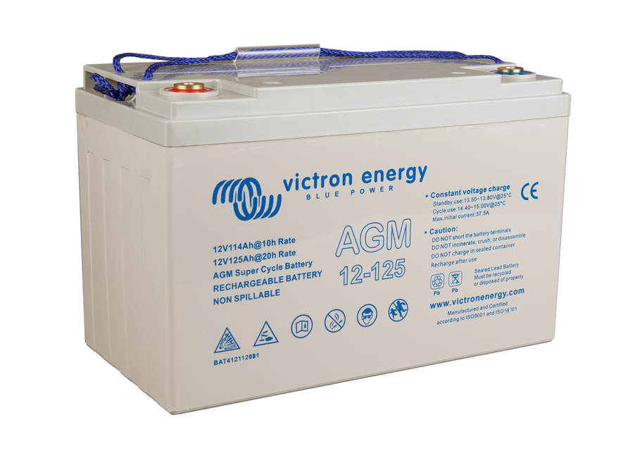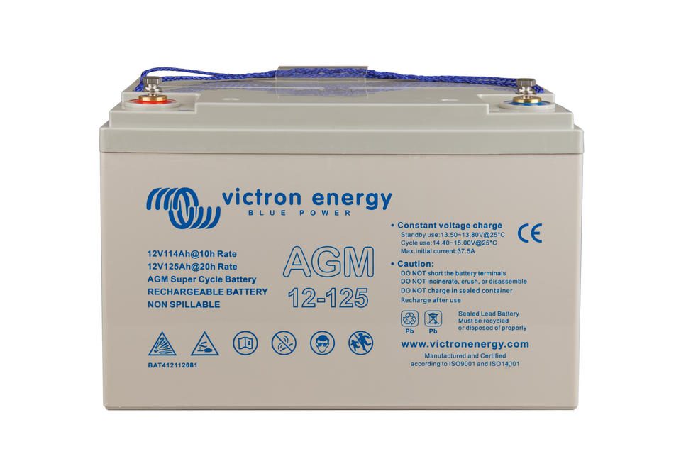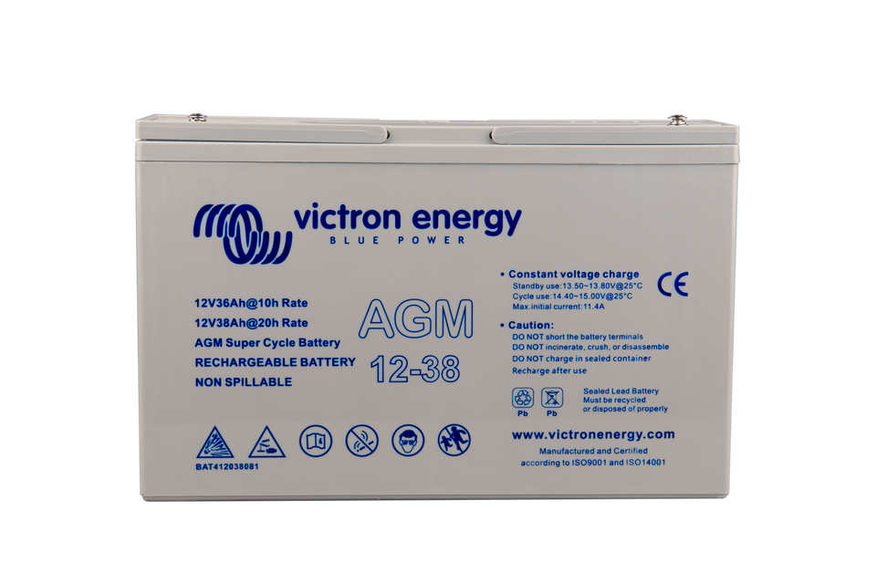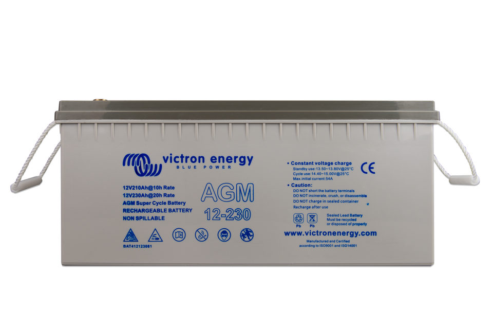 The GEL model range offers best deep cycle durability and overall longer life. The use of high purity materials and lead calcium grids ensure that for both AGM and GEL products have particularly low self-discharge so that they will not go flat during long periods without charge. Both ranges are supplied with M8 drilled, flat copper terminals ensuring best possible connection contact and eliminating the need for battery terminals. The batteries are compliant with both CE and UL specifications in ABS fireproof containers and come with Victron's 2 year world-wide warranty.