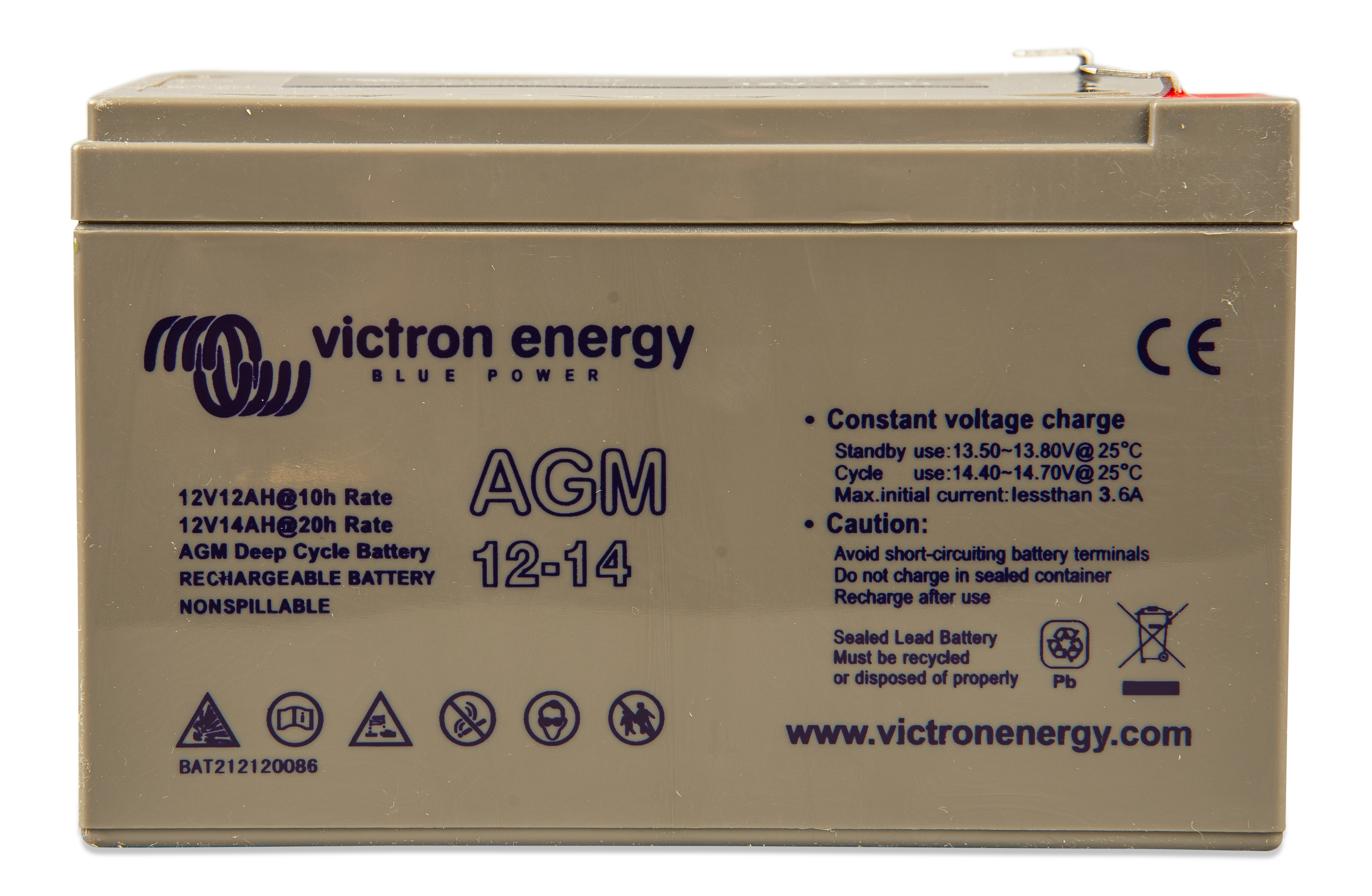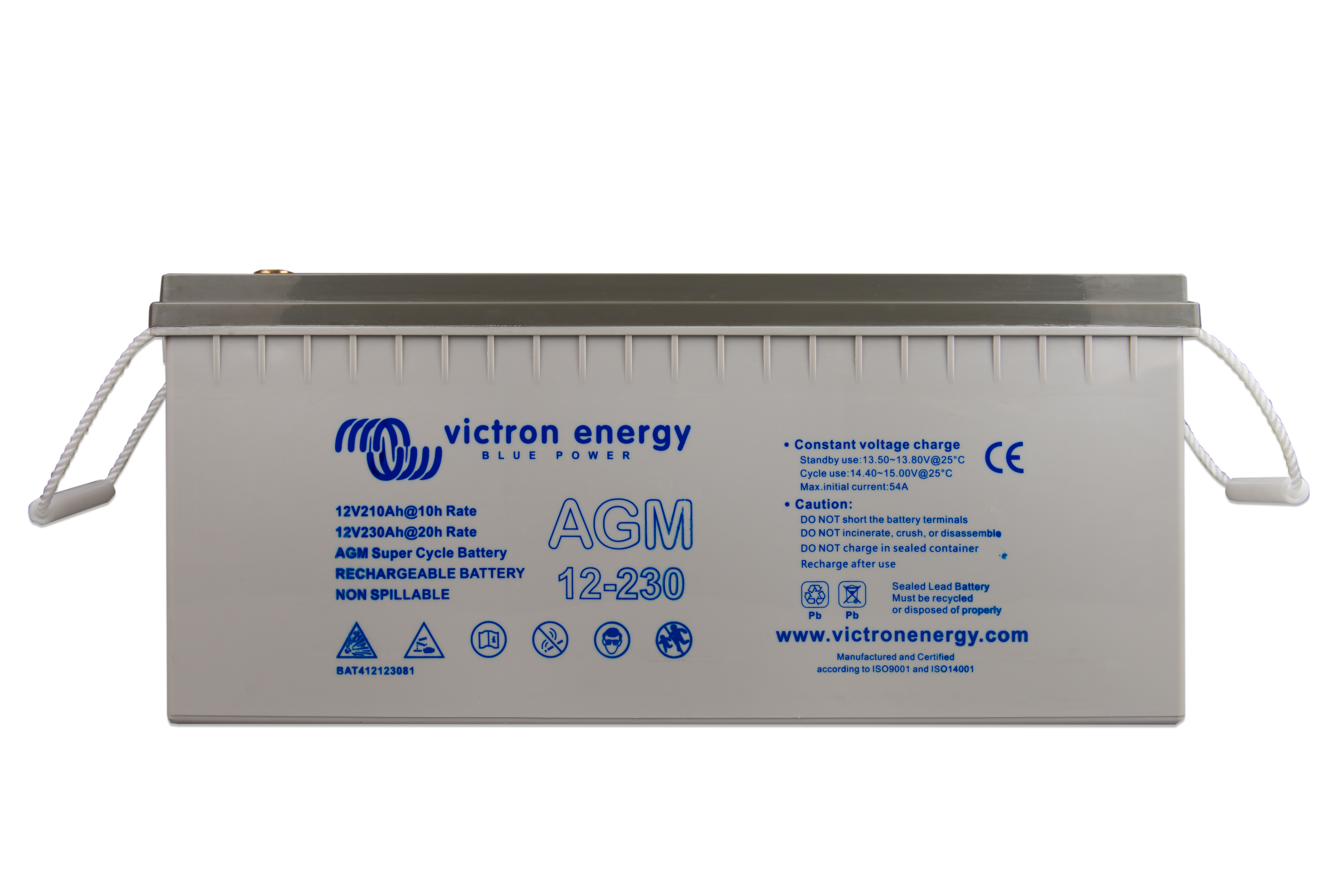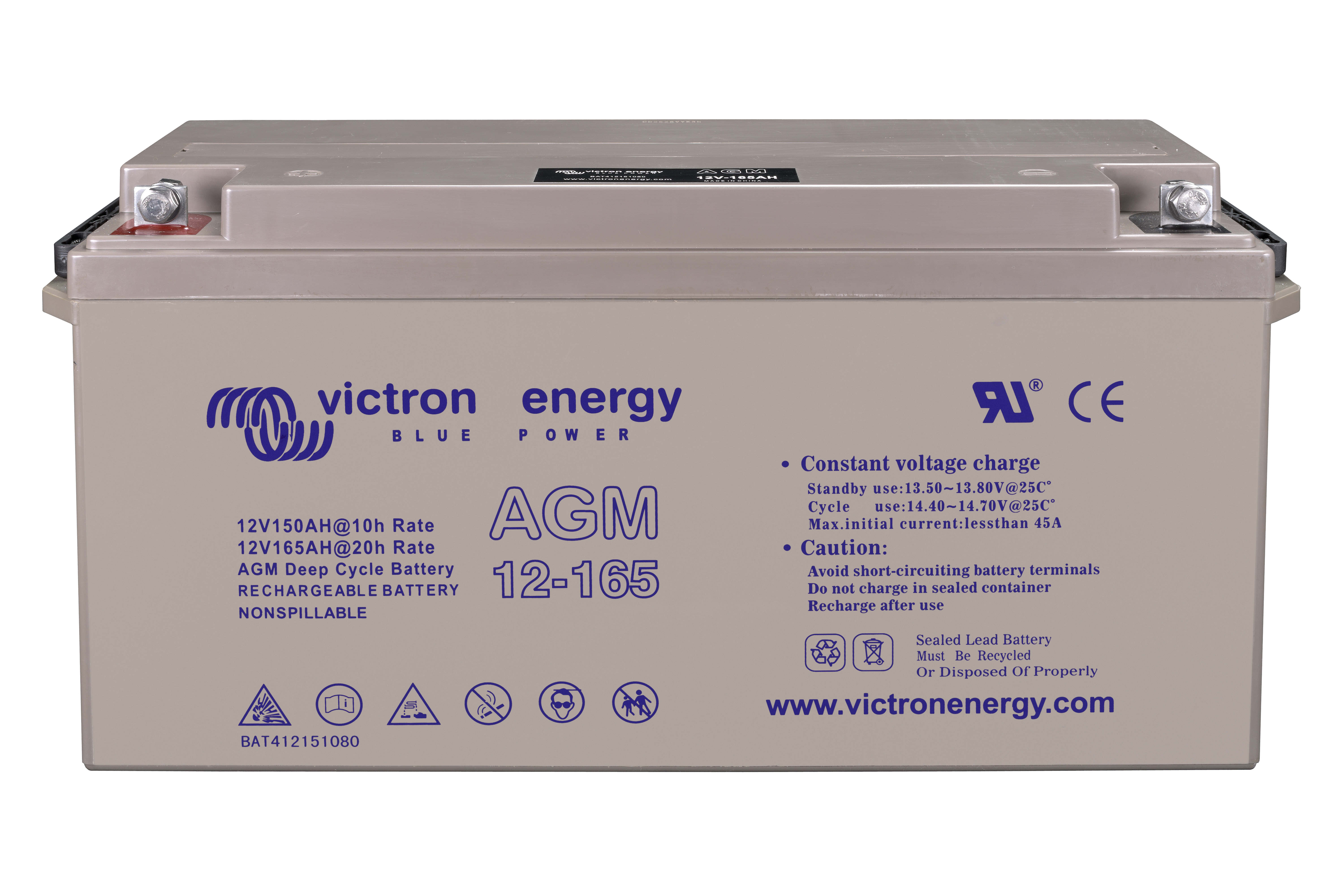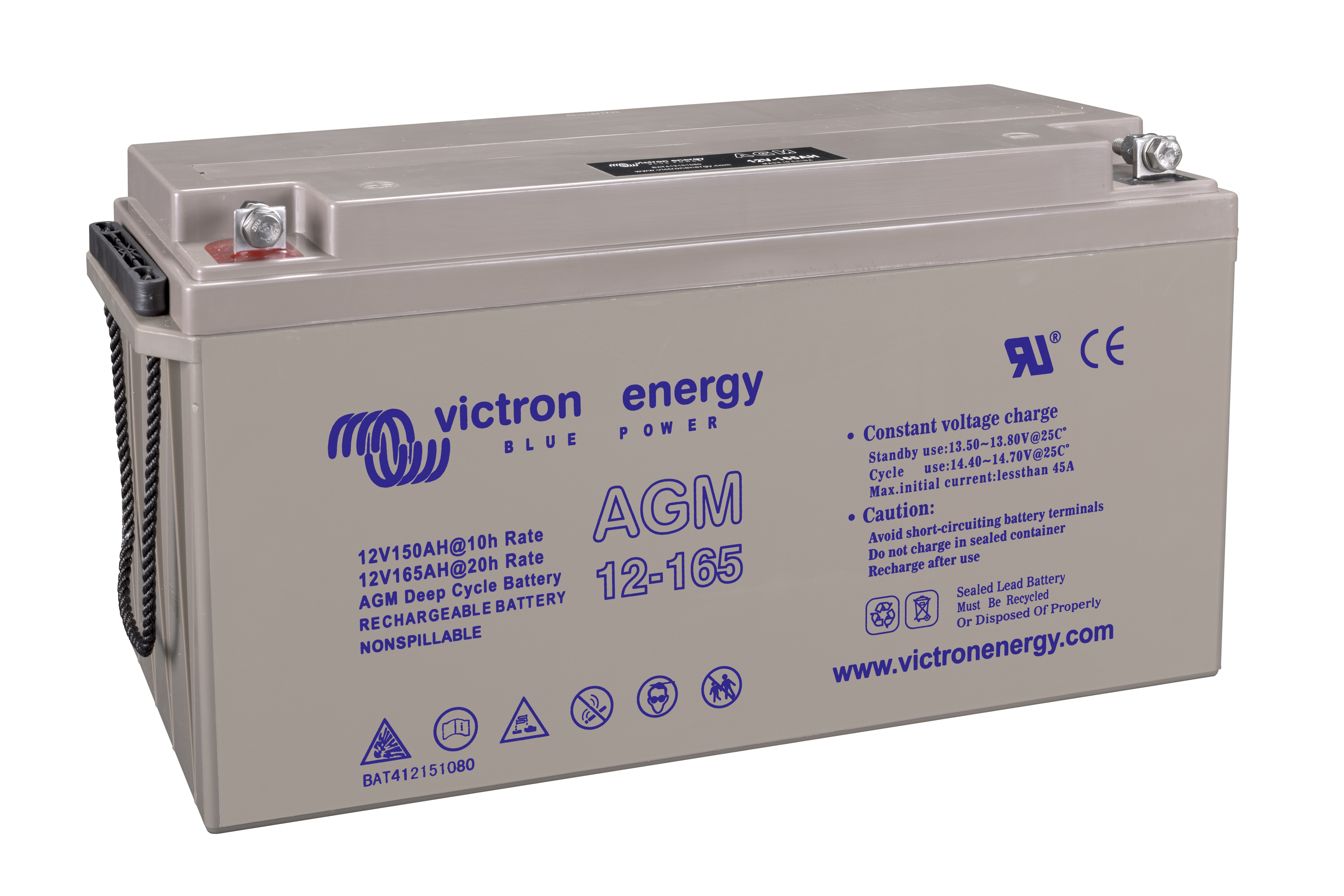 The GEL model range offers best deep cycle durability and overall longer life. The use of high purity materials and lead calcium grids ensure that for both AGM and GEL products have particularly low self-discharge so that they will not go flat during long periods without charge. Both ranges are supplied with M8 drilled, flat copper terminals ensuring best possible connection contact and eliminating the need for battery terminals. The batteries are compliant with both CE and UL specifications in ABS fireproof containers and come with Victron's 2 year world-wide warranty.