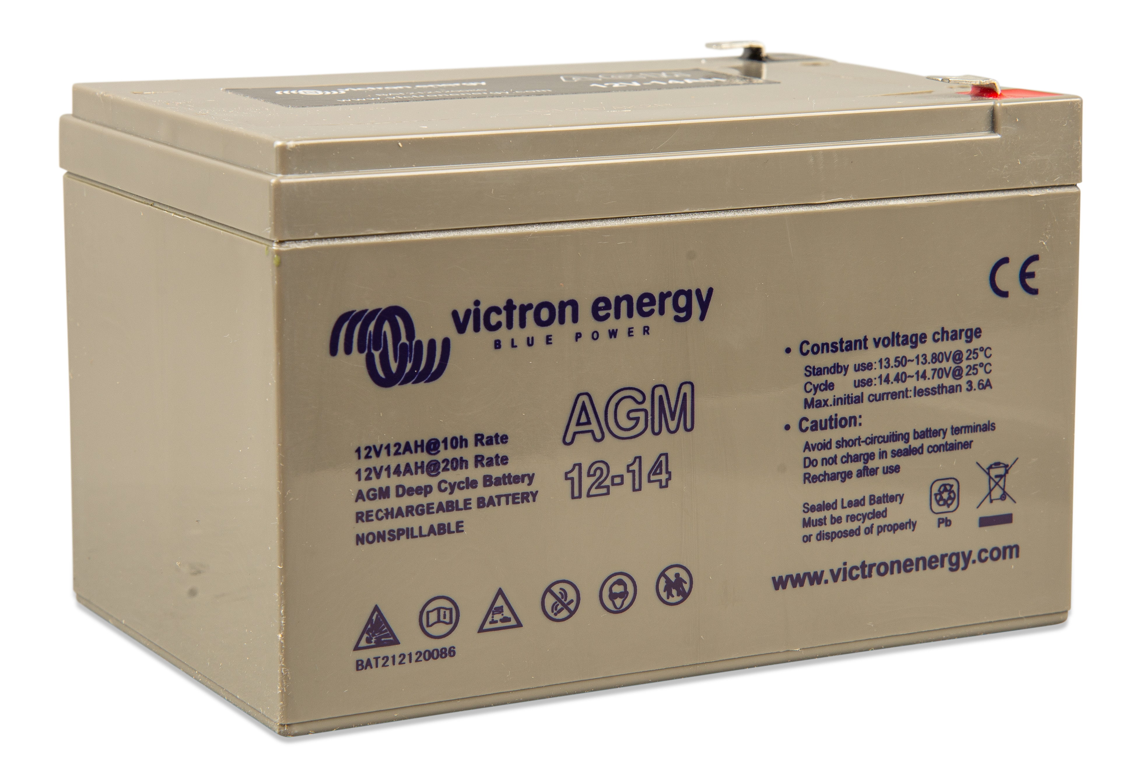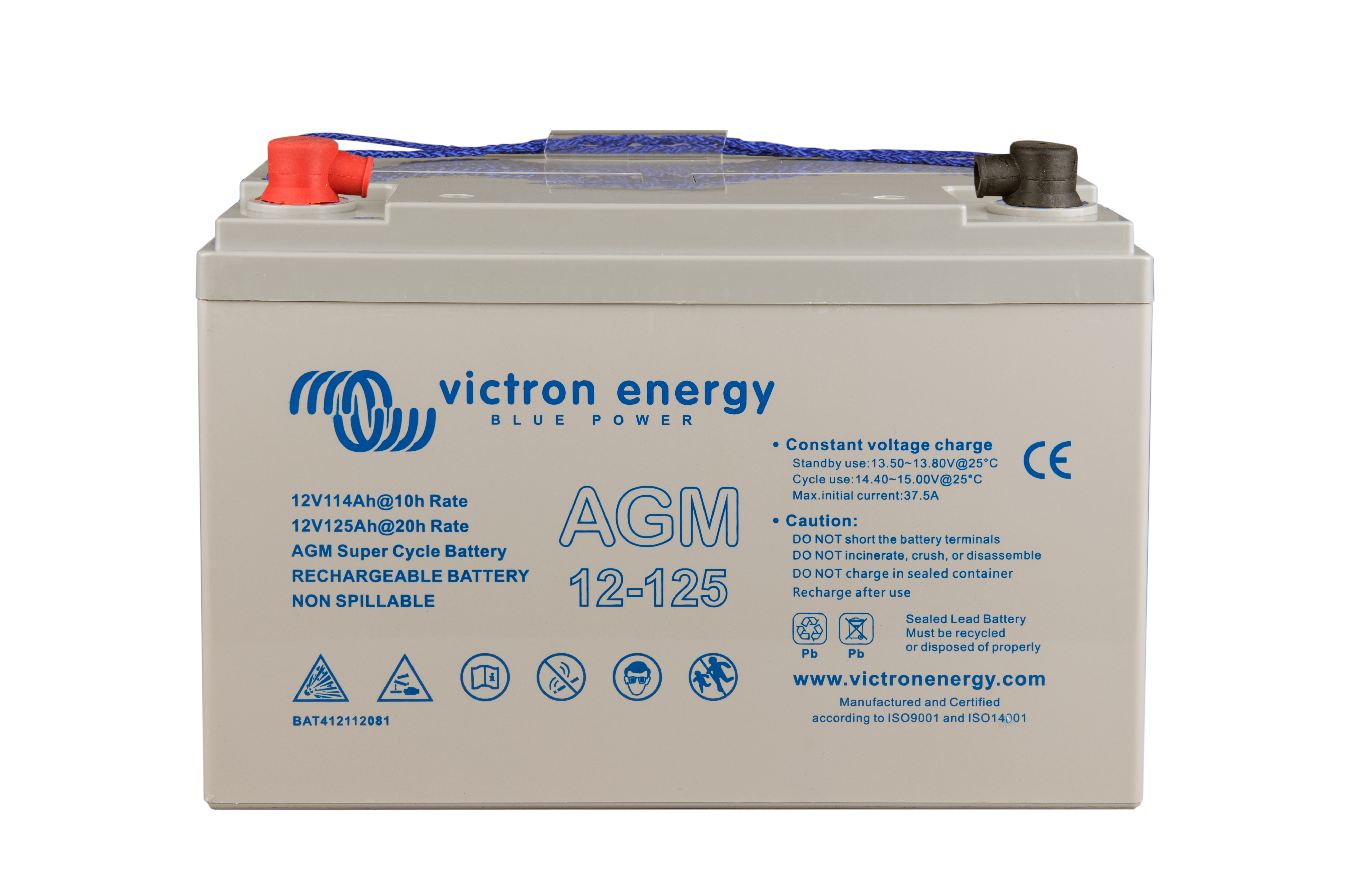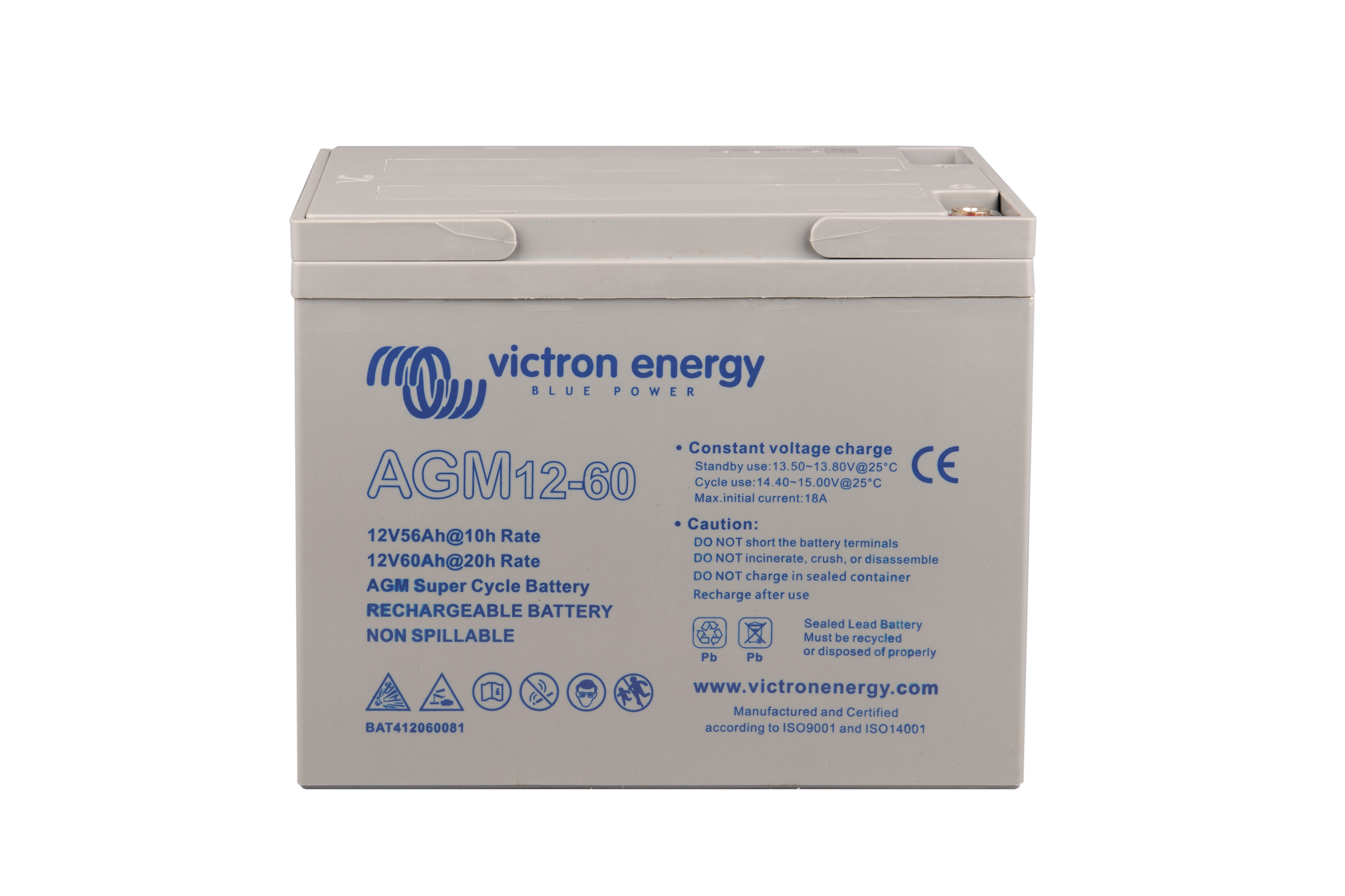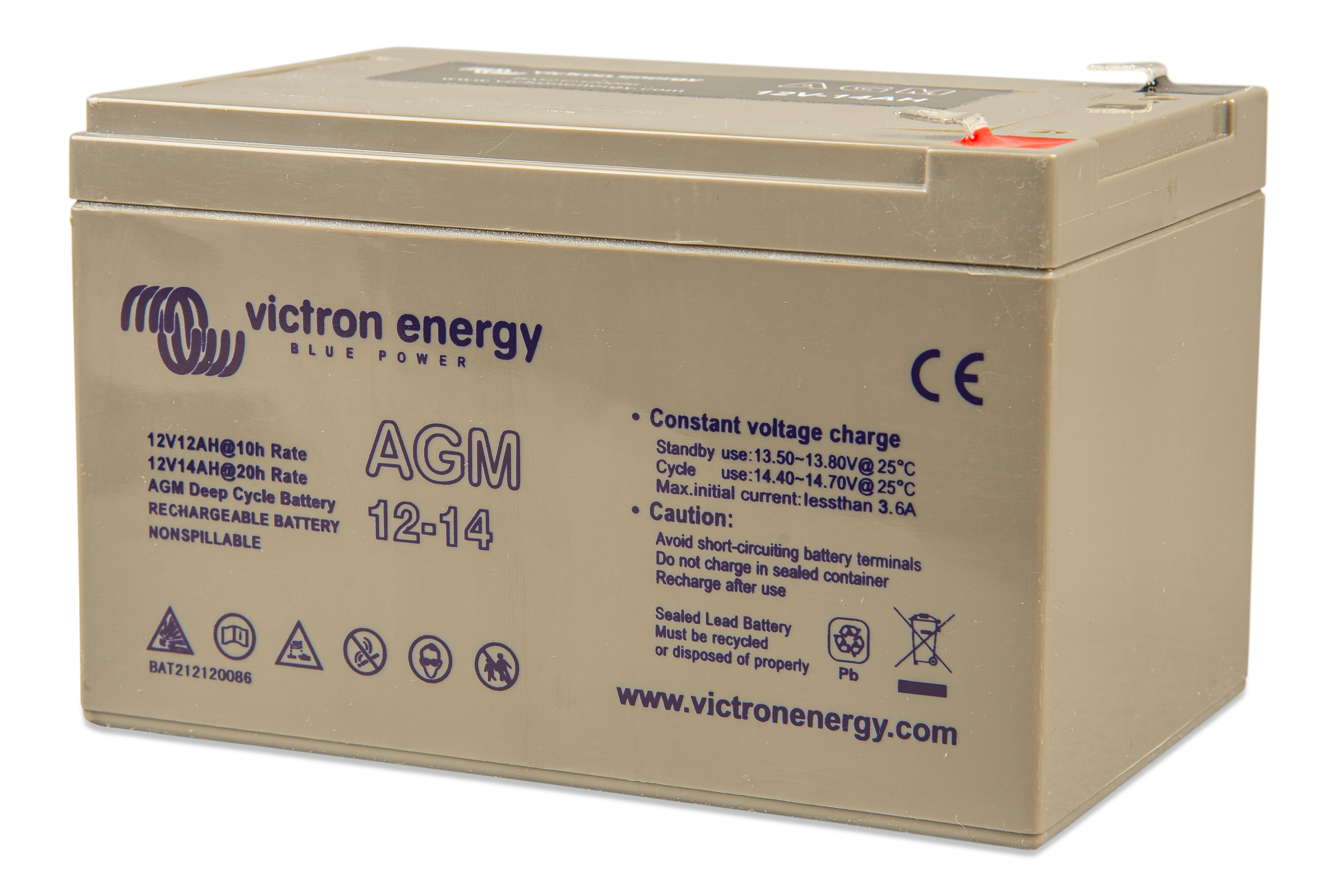 The GEL model range offers best deep cycle durability and overall longer life. The use of high purity materials and lead calcium grids ensure that for both AGM and GEL products have particularly low self-discharge so that they will not go flat during long periods without charge. Both ranges are supplied with M8 drilled, flat copper terminals ensuring best possible connection contact and eliminating the need for battery terminals. The batteries are compliant with both CE and UL specifications in ABS fireproof containers and come with Victron's 2 year world-wide warranty.