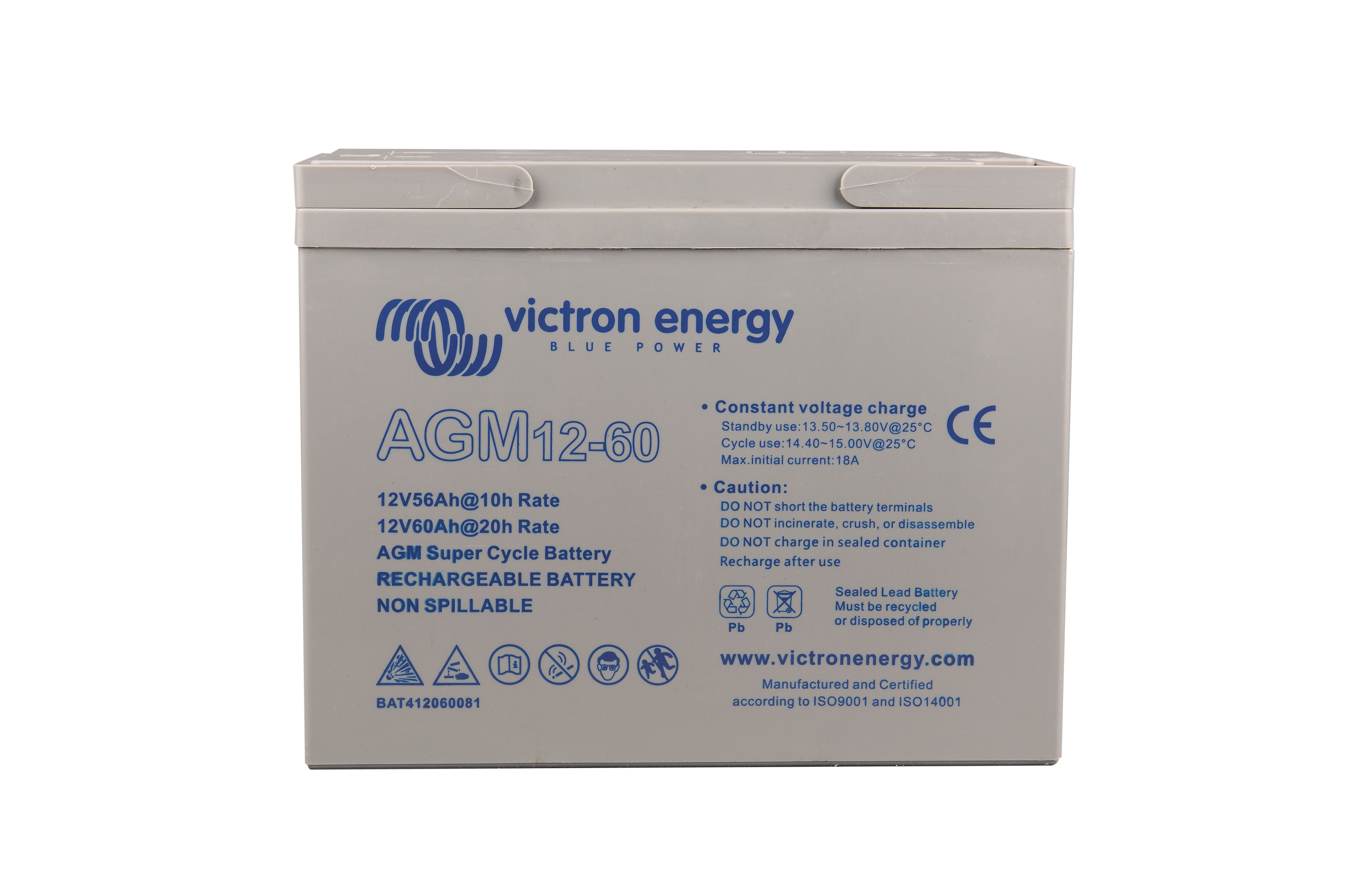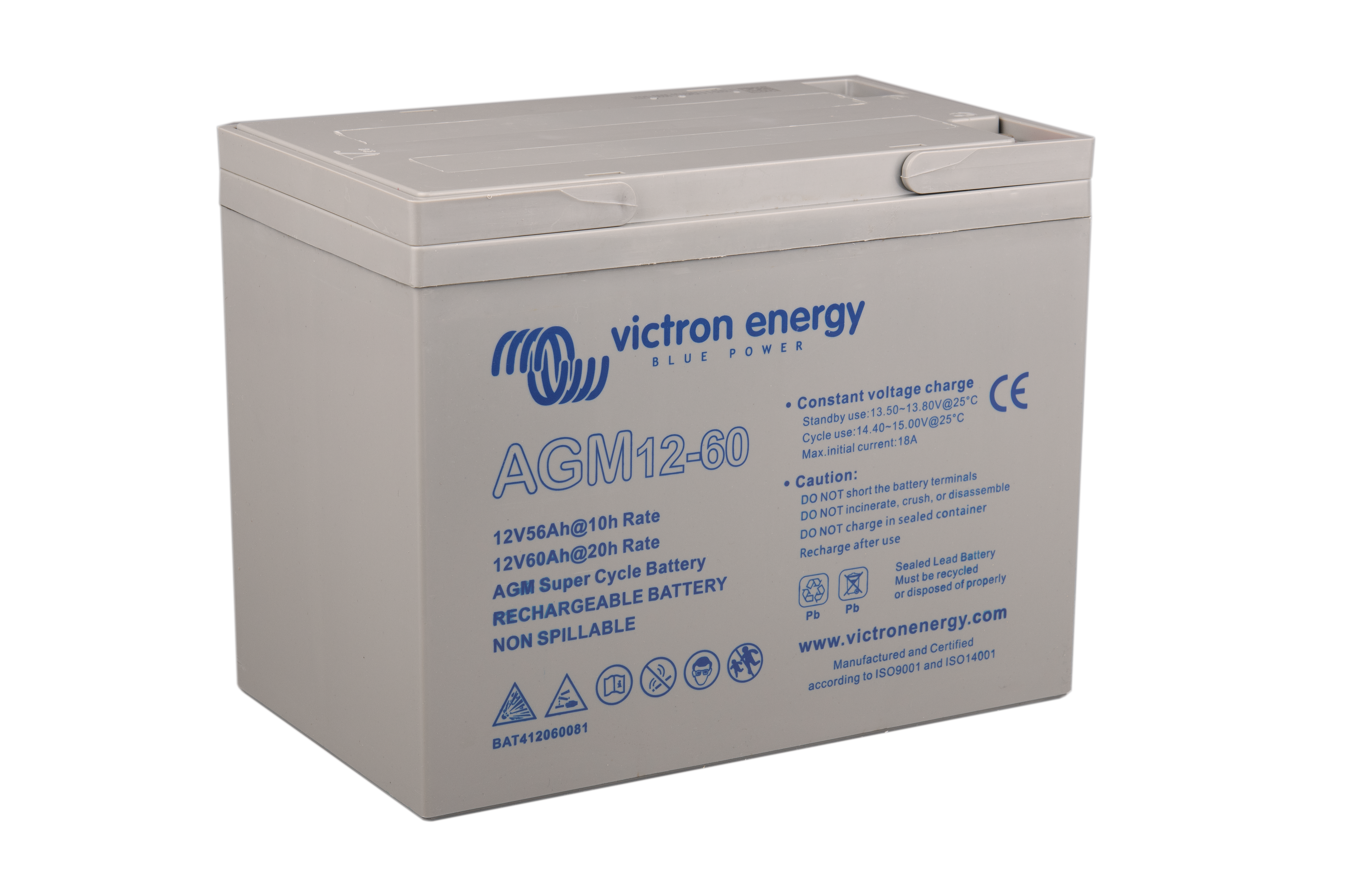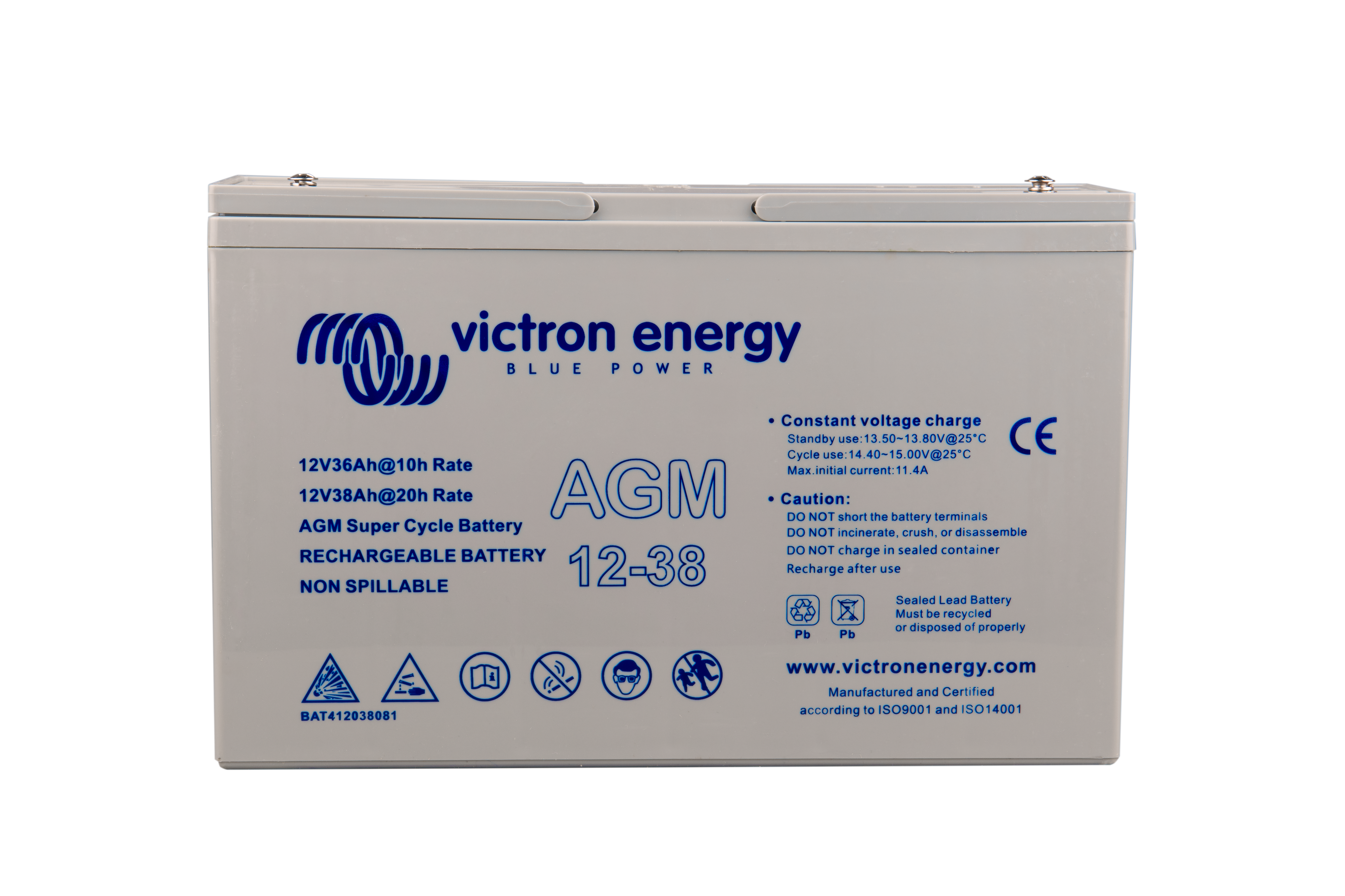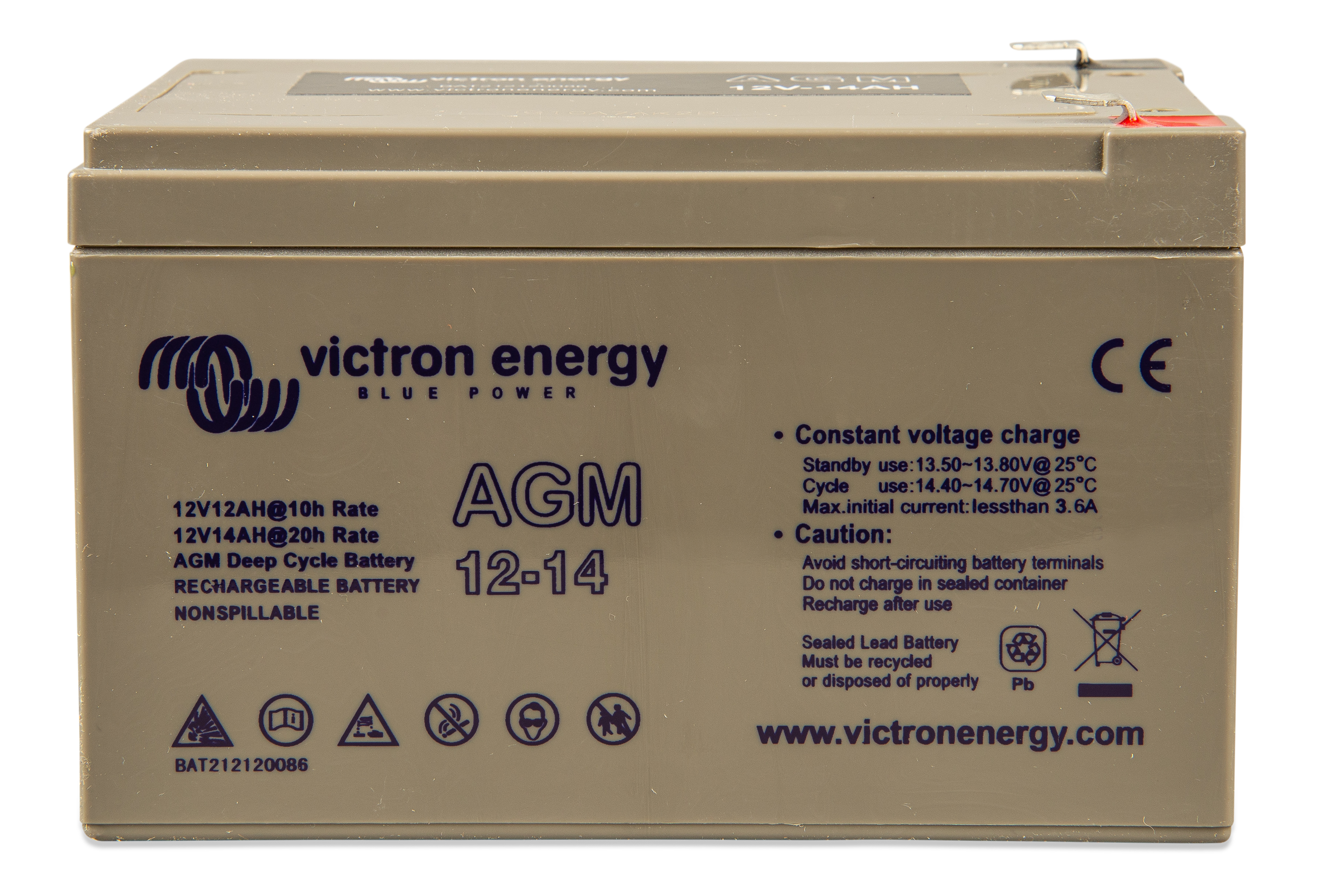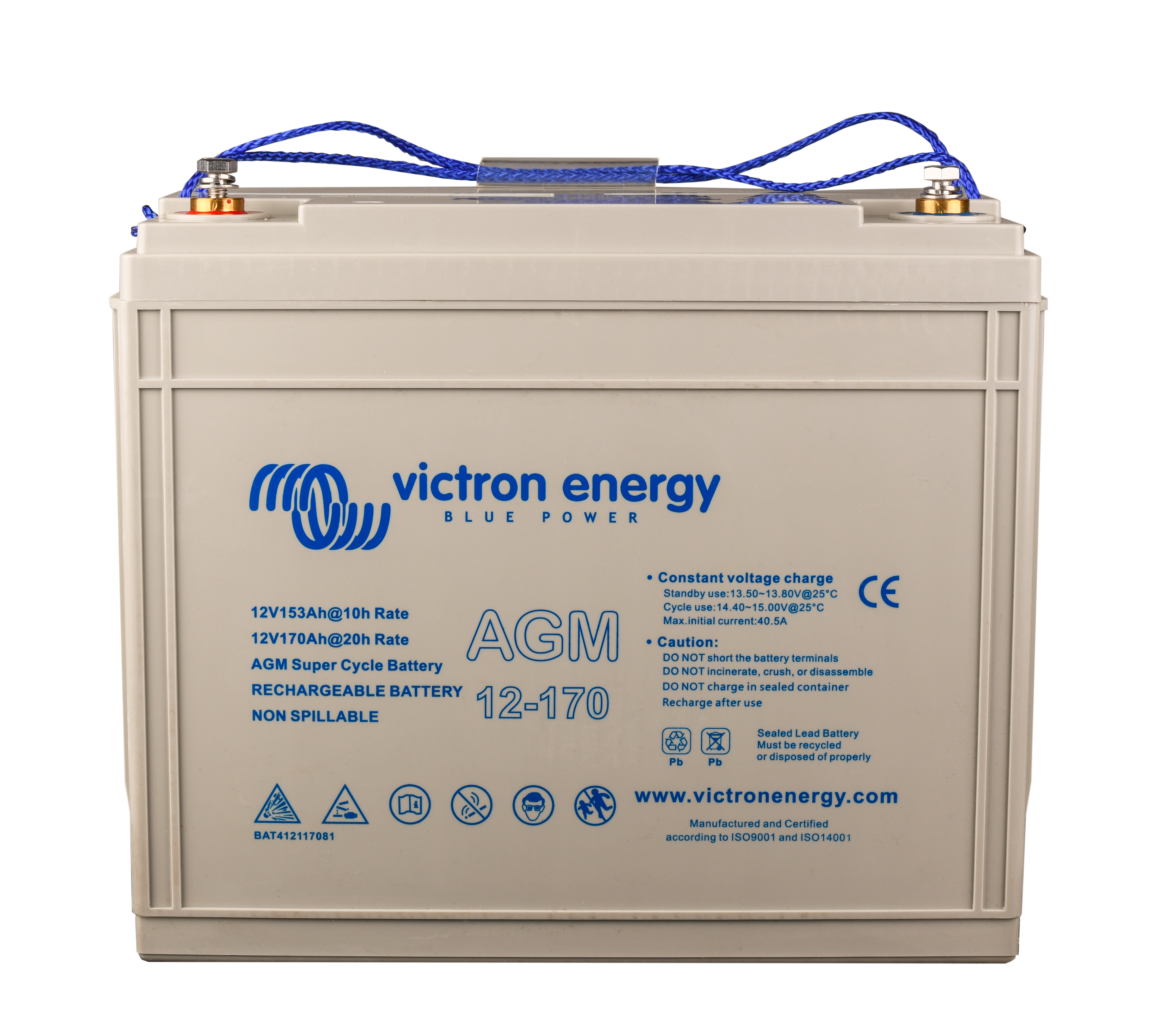 The GEL model range offers best deep cycle durability and overall longer life. The use of high purity materials and lead calcium grids ensure that for both AGM and GEL products have particularly low self-discharge so that they will not go flat during long periods without charge. Both ranges are supplied with M8 drilled, flat copper terminals ensuring best possible connection contact and eliminating the need for battery terminals. The batteries are compliant with both CE and UL specifications in ABS fireproof containers and come with Victron's 2 year world-wide warranty.