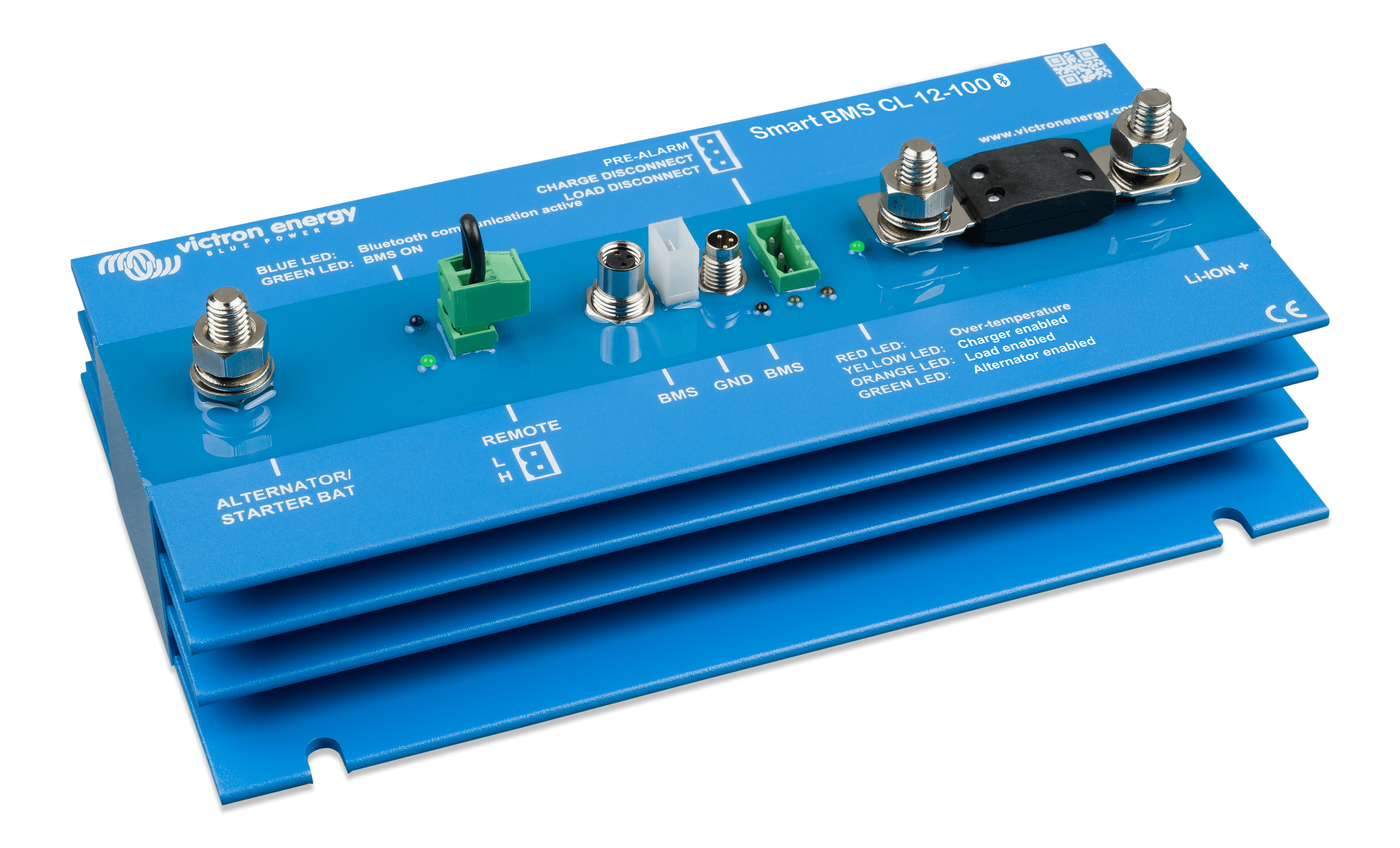 The Smart BMS CL 12-100 is a Battery Management system for Victron lithium-iron-phosphate (LiFePO4) Smart Batteries. It has been specifically designed for 12V systems with a 12V alternator.