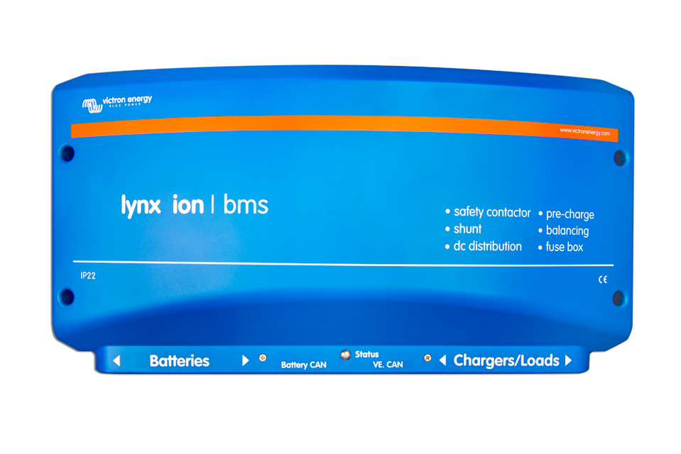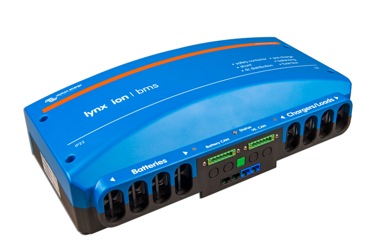 The Lynx Ion BMS is the Battery Management System that goes with the Lithium HE batteries and our Lithium 24V batteries. It has a built-in safety disconnect switch, and manages cell-balancing, battery balancing and charging and discharging of the system. The Lynx Ion BMS protects the battery pack from both overcharging and depletion.