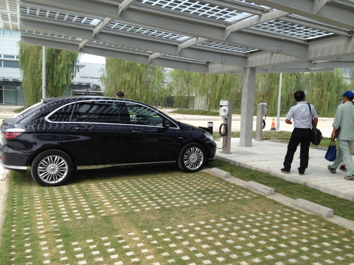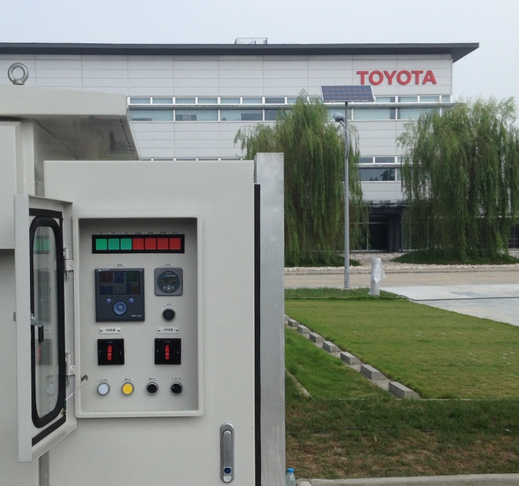 Alan Peng of Shenzhen Royal Technology Co. Ltd., who are Victron Energy dealers in China contacted us recently, having installed an EV charging station for Toyota using Victron Energy products. The headline image above and the photos below show the installation.