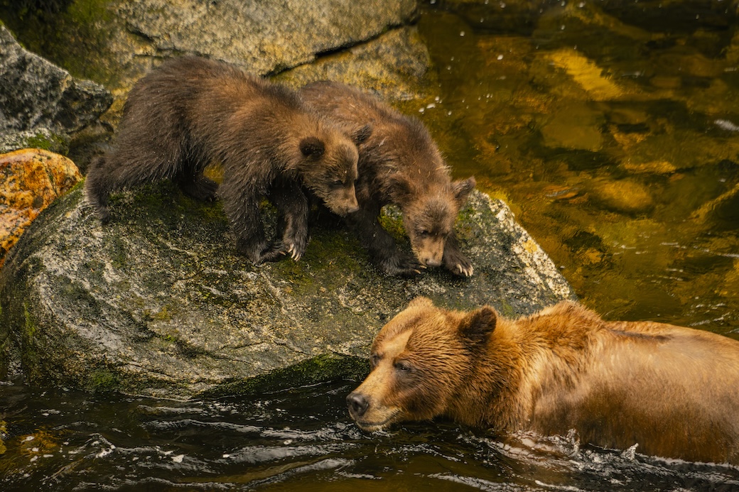 “It’s very wild being there and spending time with the bears. Each of them has such a different personality – as different as humans. There were about 24 individual bears that we identified and named. Scuba Sue was a class favourite. She can hold her breath for two minutes. She’s an amazing fisherman but a terrible mother – because she forgets about her cubs crying on the shore.”