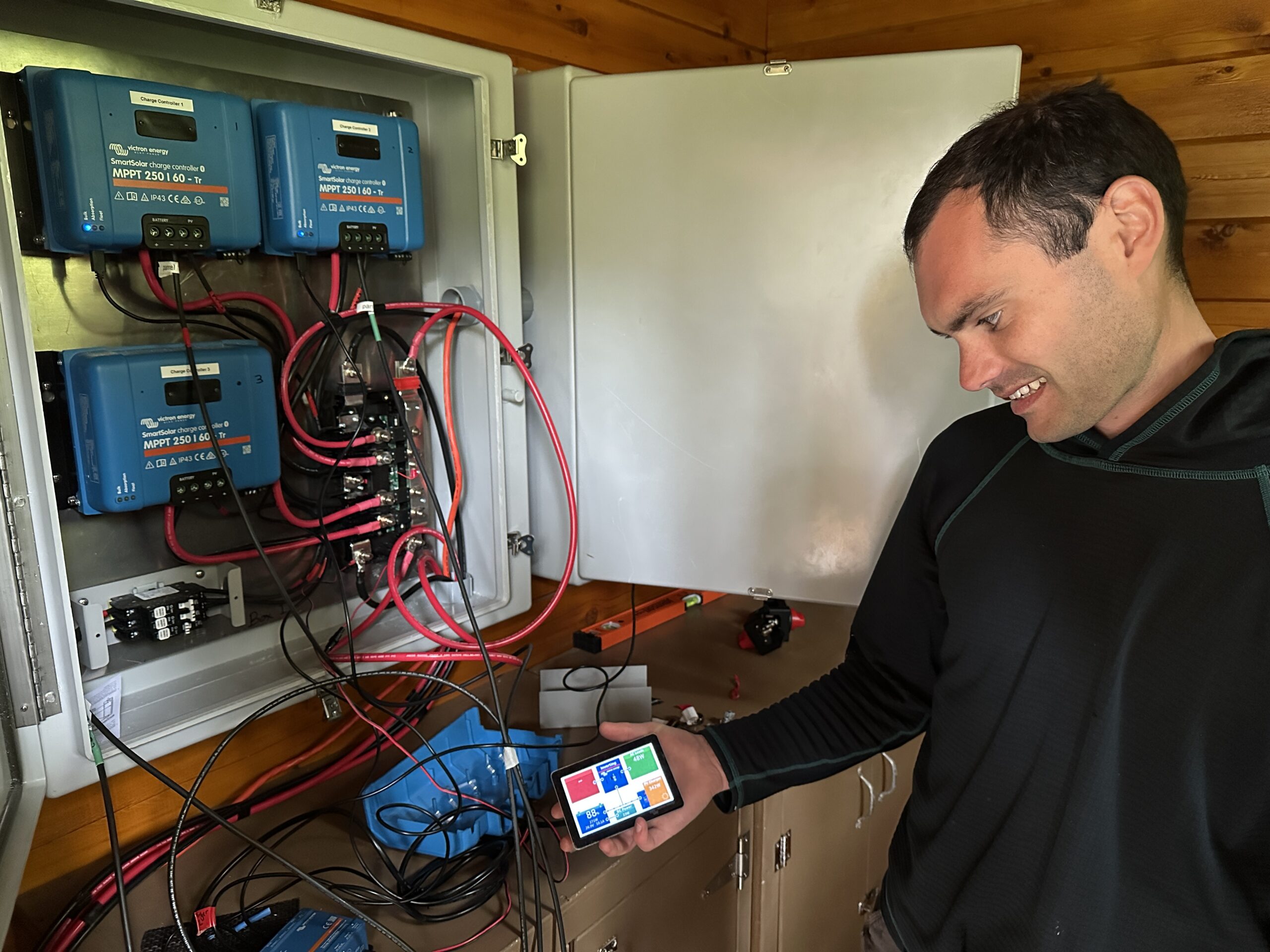 After a few days, when the students had everything installed, something with the power system wasn’t working. They called Reid Loessberg at the Victron distributor Intelligent Controls, who also provide support to the Explore.org tech team.