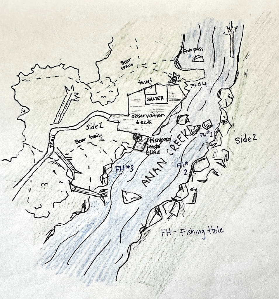 Brian and the students made the trip to Anan – which is about an hour’s journey by boat. Once they got to the trailhead, there was another mile’s walk through beautiful old-growth forest around the lagoon and along Anan Creek.
