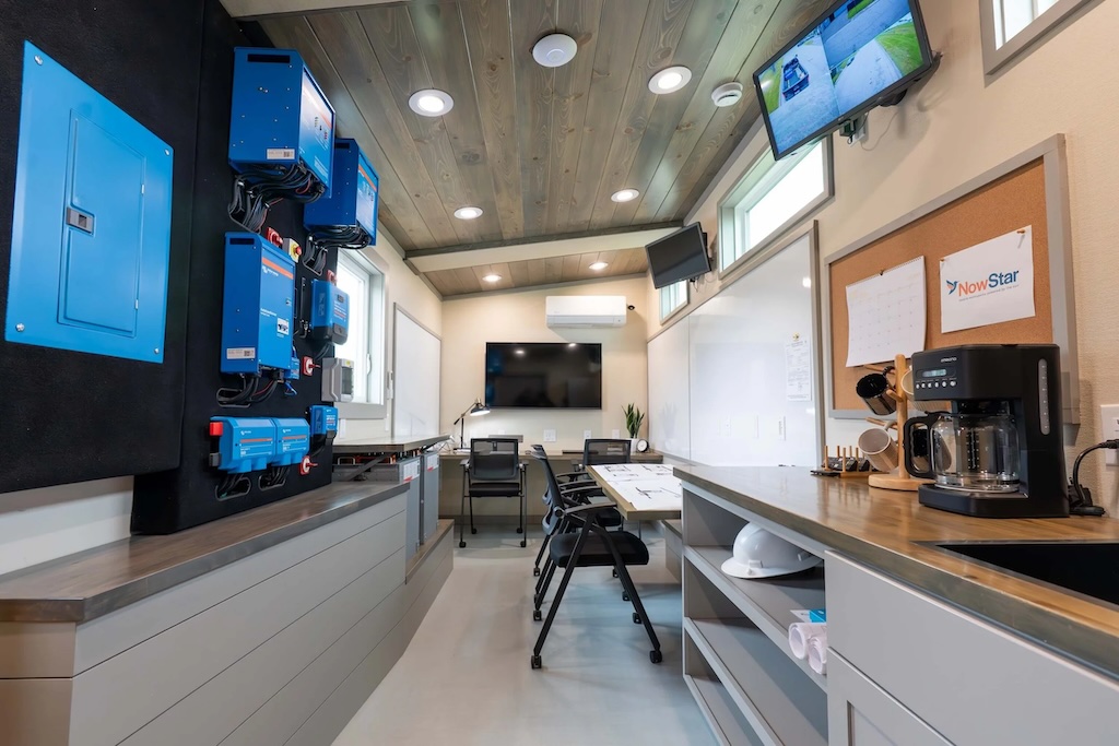 Built by NowStar who are based in Columbus Ohio, the solar powered workspaces feature a quiet, climate-controlled area for five to ten occupants. Insulated walls and energy recovery ventilation reduce power consumption during winter and summer alike.
