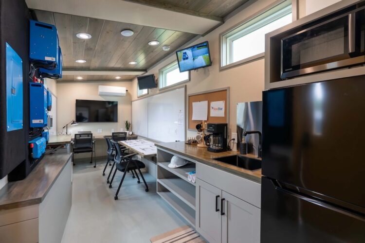 Built by NowStar who are based in Columbus Ohio, the solar powered workspaces feature a quiet, climate-controlled area for five to ten occupants. Insulated walls and energy recovery ventilation reduce power consumption during winter and summer alike.