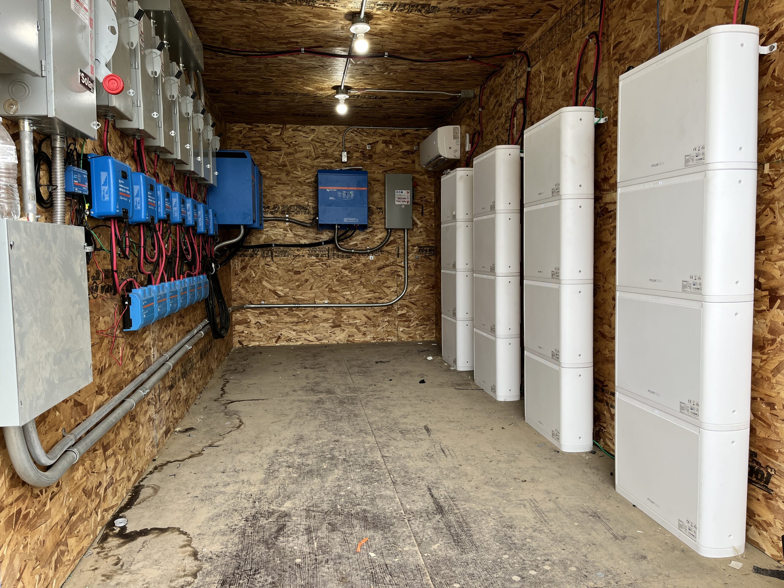 24 × Pylontech Pelio 48 V lithium batteries provide 124kWh of storage