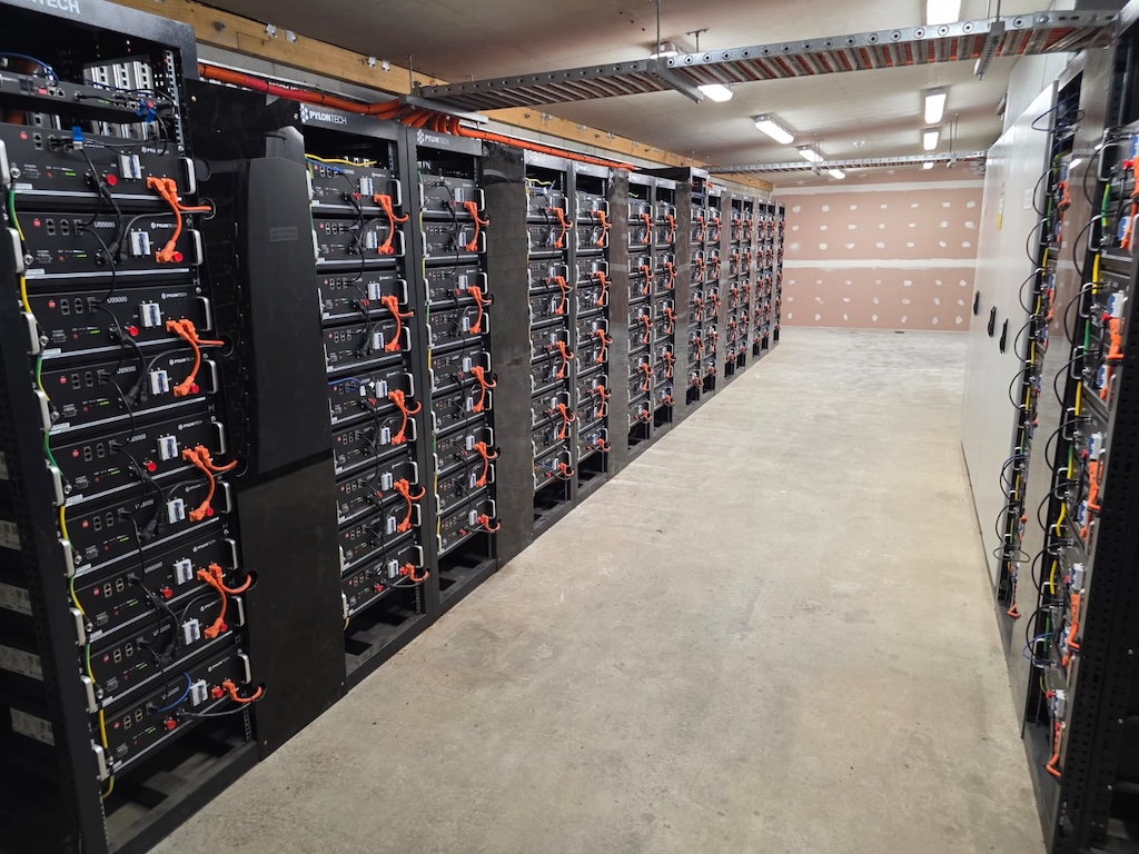- An 800 kWh Pylontech US5000 battery bank, stores the renewable energy and provides reliable power through the night and during periods of low sunlight.