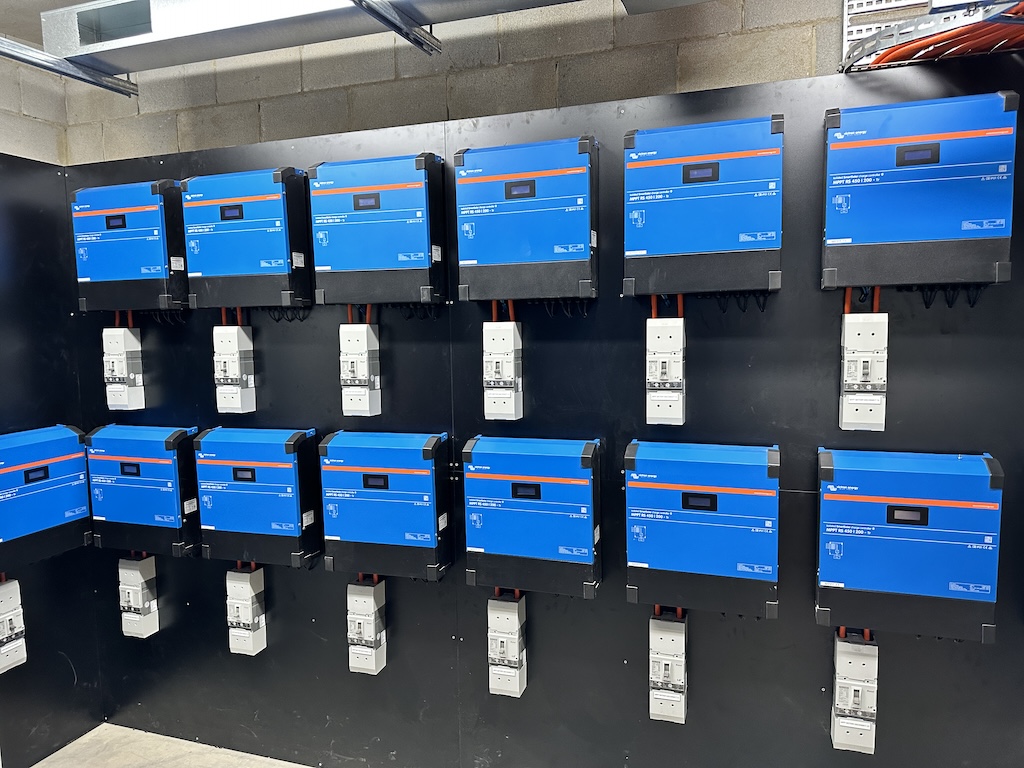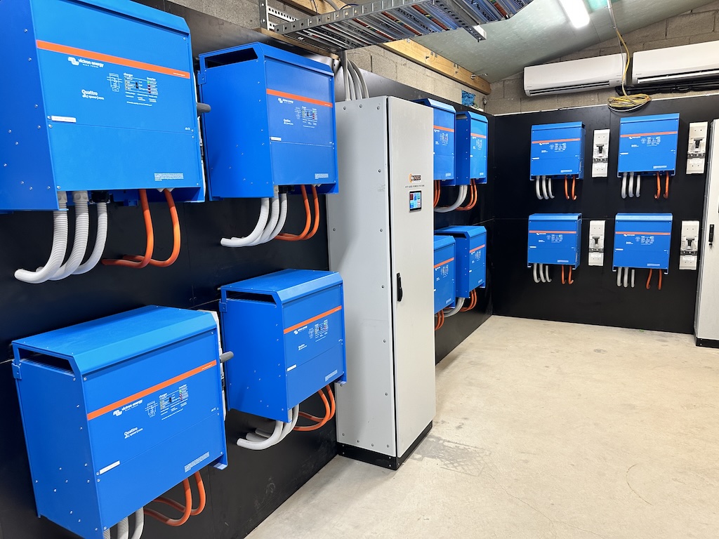 - 12 × Quattro 48/15000 Inverter/Chargers — providing robust AC power management and seamless switching between battery and generator energy sources.