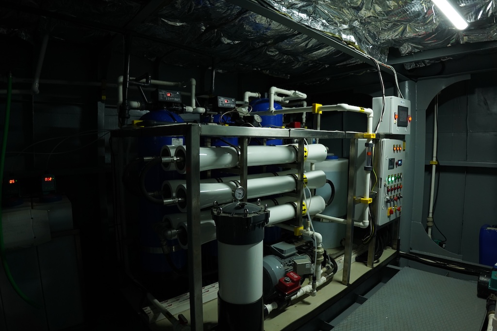 Blue Hybrid’s desalination platform produces up to 18 tons of fresh water per day. The facility operates using reverse osmosis technology delivering potable water containing approximately 300 total dissolved solids (TDS) parts per million – from a raw water source which in the Eastern Mediterranean contains around 40,000 TDS.