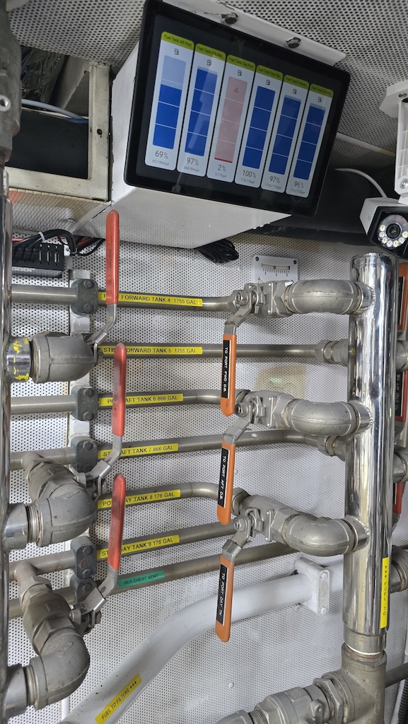 The boat had an archaic voltage-based tank monitoring system and, surprisingly, there was no practical way of monitoring tank levels where the owner actually needed it – in the engine room. Without gauges where fuel transfer is carried out, the owner would have to stop work during tank pumping and visit the bridge to read the gauge levels in order to see how he was getting on!