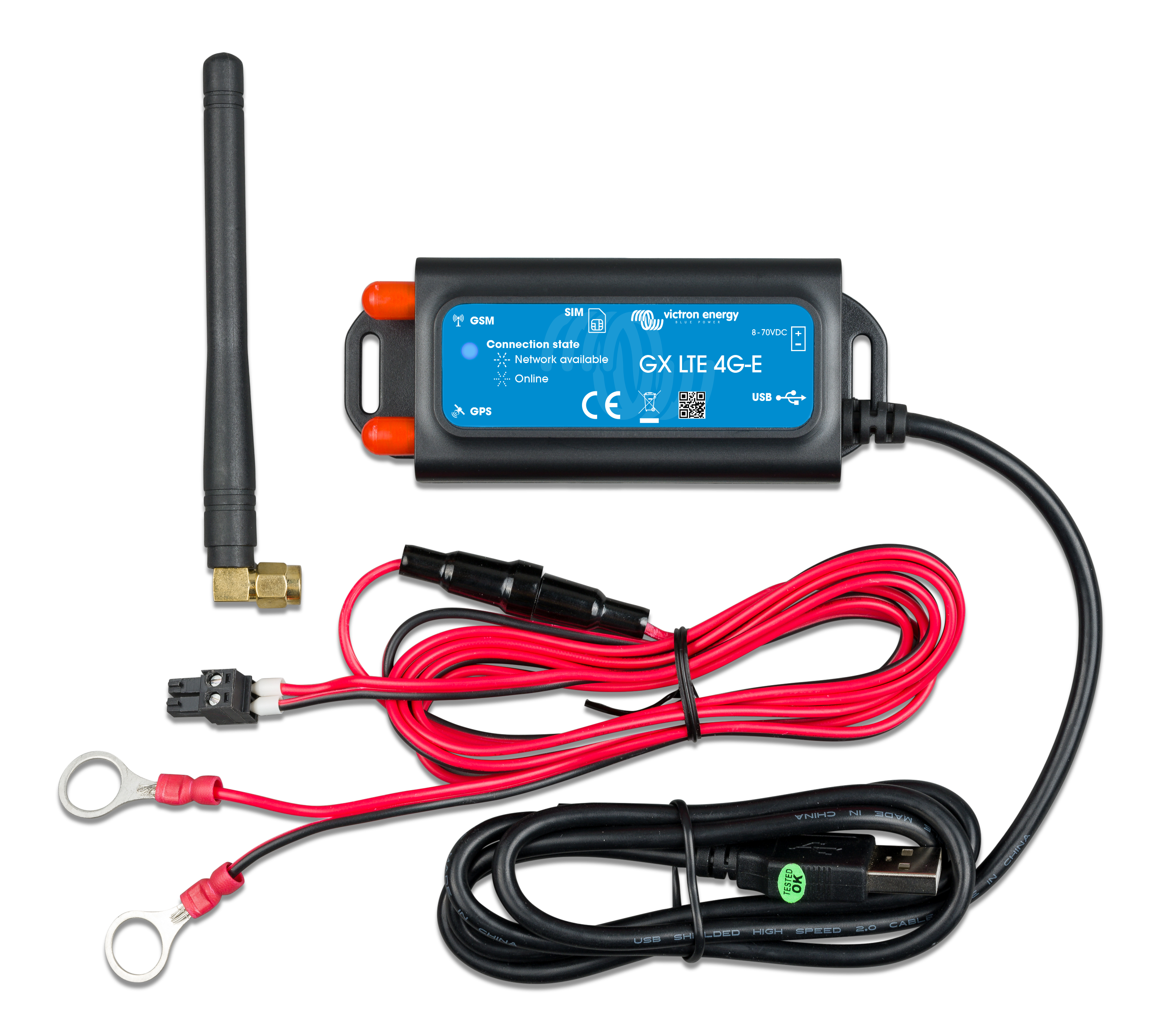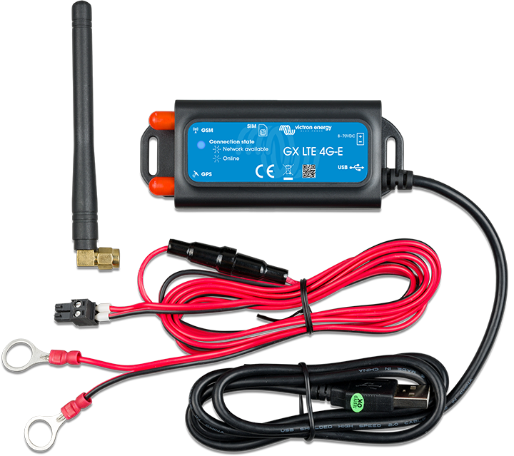The GX LTE 4G is a cellular modem for our GX range of monitoring products. It provides a mobile internet connection for the system and connection to the VRM Portal. It works on 2G, 3G and 4G networks.