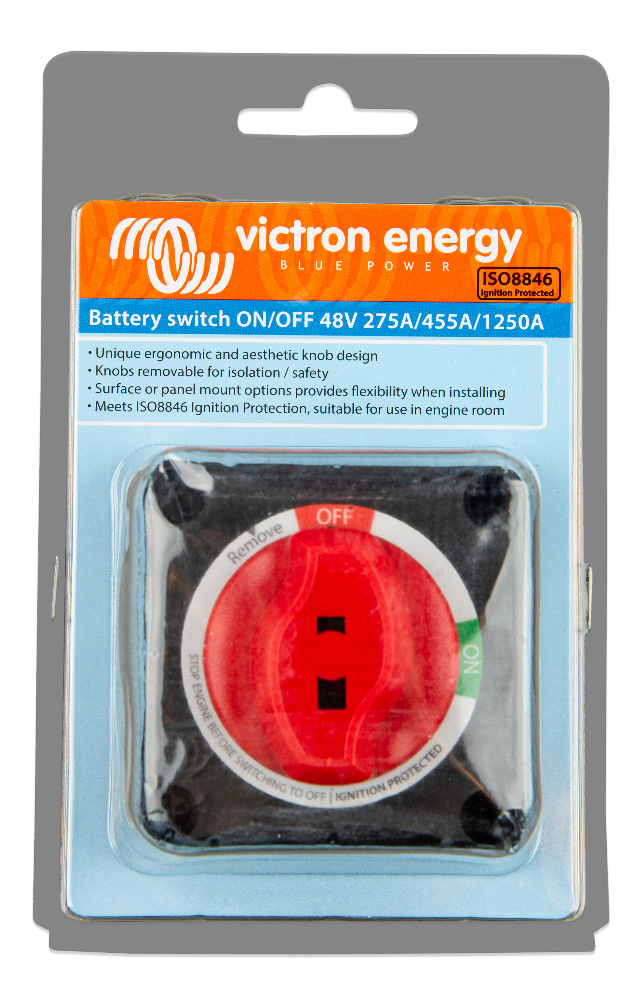 The Battery Switch meets the ISO8846 Ignition Protection standard and is suitable for use in an engine room.