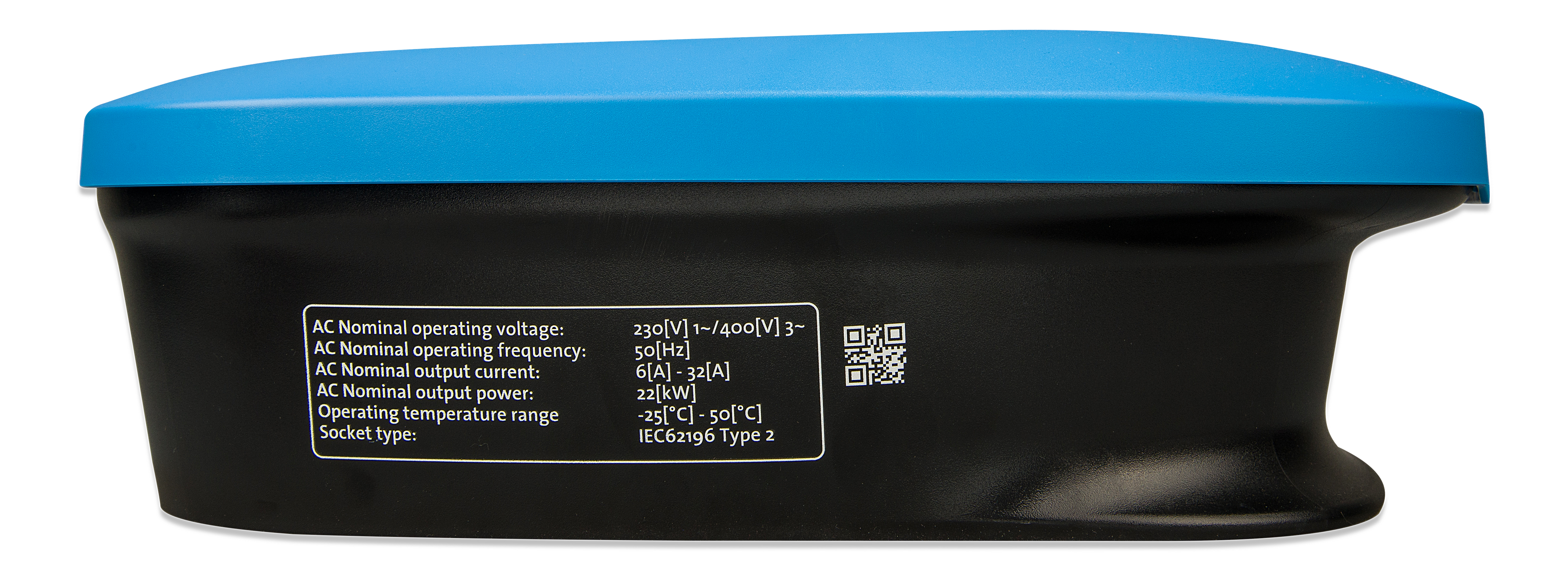 The device is technically identical to the EV Charging Station, but with a new, modern design available in 3 colours and without the built-in LCD screen. Initial setup, configuration and monitoring is done from VictronConnect via Bluetooth and/or the integrated web interface via a WiFi Access Point or a WiFi LAN.