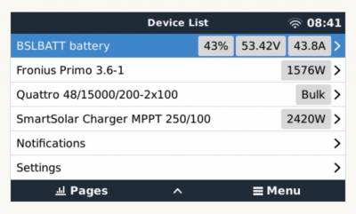 In grid connected systems, advanced control functions are configurable in the ESS settings on the GX device.