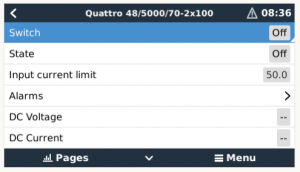 - Switch the Multis/Quattros on in the CCGX menu. Normal operation should continue after the system has initialized.