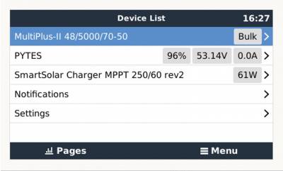 In grid connected systems, advanced control functions are configurable in the ESS settings on the GX device.