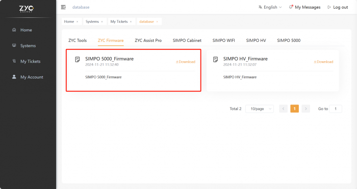 Victron does not store ZYC firmware files on VRM, nor does it know what the latest firmware version is, or if there is an update available. ZYC updates will need to be downloaded to your computer first from https://www.zycportal.com documentation section so that you can upload them via VRM.