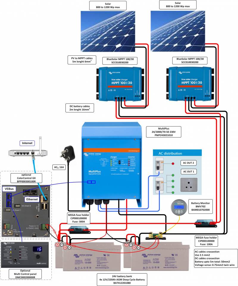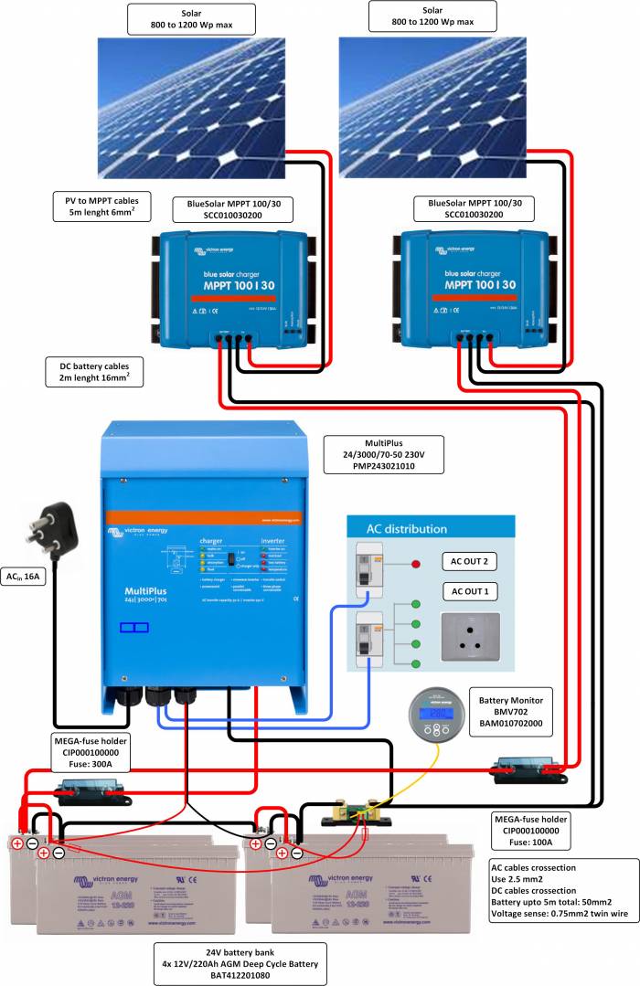 • We recommend using deep-cycle GEL or AGM batteries. At least 200Ah blocks.