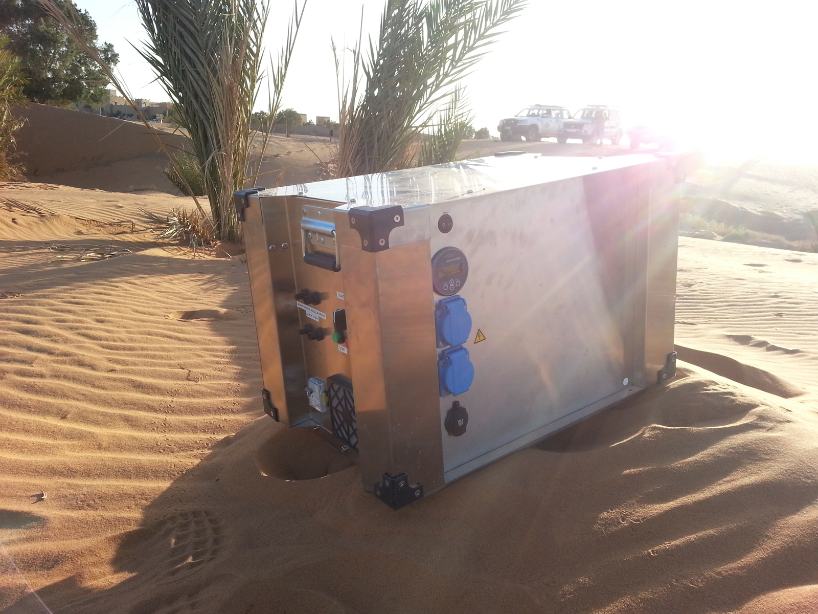 In an environment that is tortured by sandstorms, resulting in almost non-existent tracks; the challenges to simply transport Solicase are difficult. The sand, transportation shocks to equipment, combined with daily temperatures that reach over 45 degrees Celsius, demands peak performance and reliability of the equipment. It always needs to function, no matter how harsh the conditions. Because this marathon is held in such extreme and remote conditions, participants rely on the medical facilities which in themselves rely on a secure electricity supply. If for example surgery needs to be performed, monitoring equipment and basic facilities such as light are essential and must function. Staff and participants also need to be able to rely on a robust communications infrastructure. Primarily this is for assistance in the case of a search and rescue mission plus the more basic task such as the supply of goods. Besides that, power is also needed for the live webcams to connect the global audience including family, friends and sponsors of the marathon.