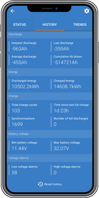 5.5.1. Tillgång till historiken via appen VictronConnect