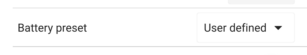 Selecione a seta pendente da Predefinição da bateria para expandir o menu pendente.