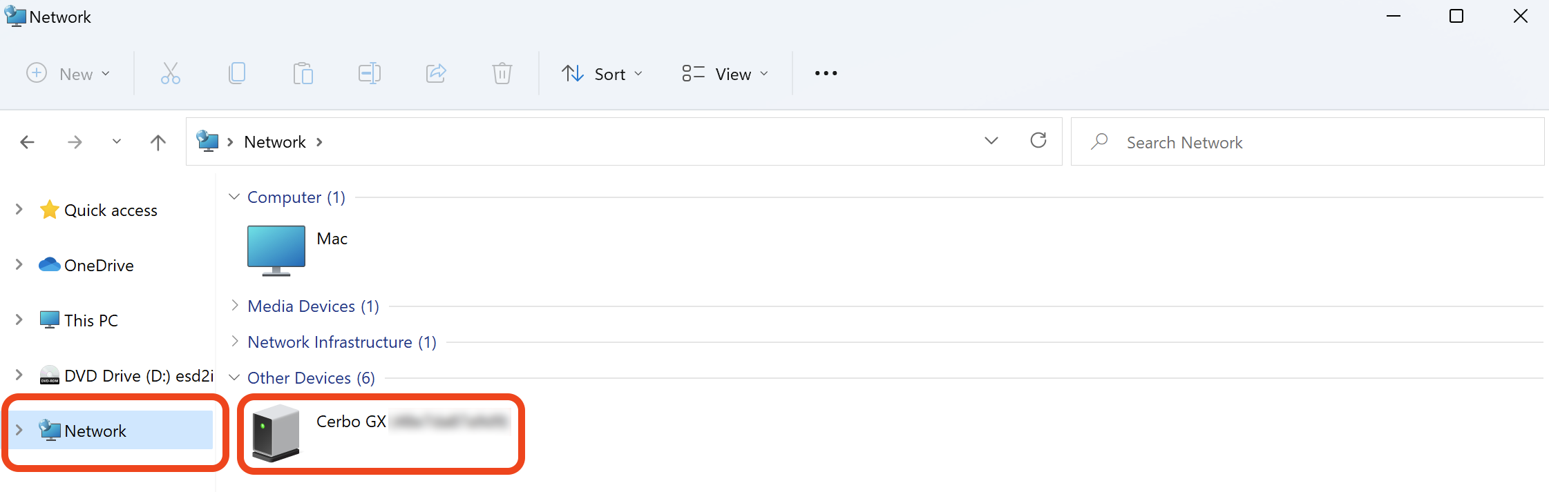 Om du är på samma lokala nätverk (som t.ex. hemma) och du använder Microsoft Windows kan du även hitta GX-enheten genom att använda Nätverksidentifiering (UPnP).