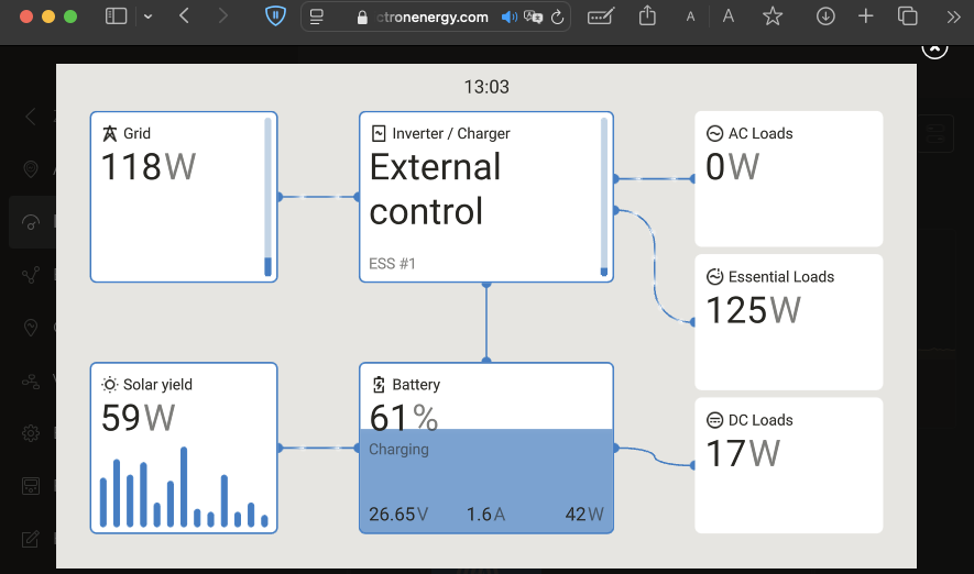 Om du inte kan använda VictronConnect kan du använda en webbläsare och navigera till IP-adressen http://172.24.24.1 eller http://venus.local