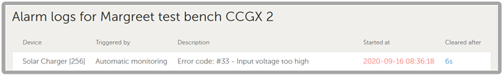 Journalisation des alarmes du chargeur solaire à travers le VRM