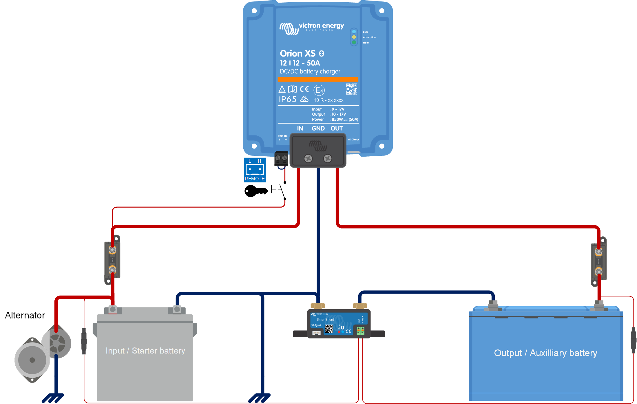 Typische Anschlusseinstellung als DC-DC-Batterieladegerät: