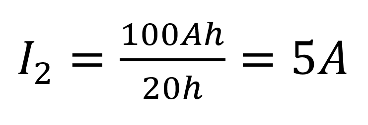Una batteria al piombo-acido è classificata come 100 A a C20: ciò significa che questa batteria può rilasciare una corrente totale di 100 A in 20 ore a una velocità di 5 A all’ora. C20 = 100 Ah (5 x 20 = 100).