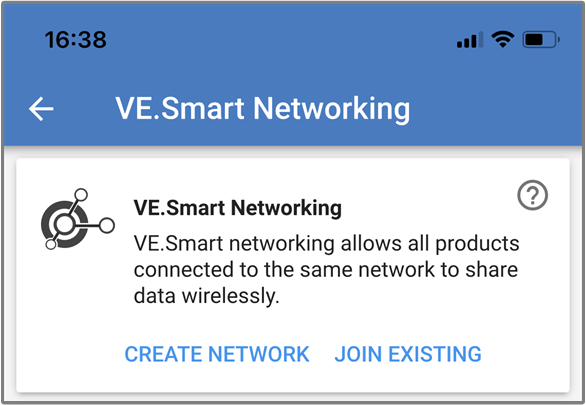Om de accumonitor onderdeel te maken van VE.Smart networking moet je ofwel een netwerk aanmaken of je moet aansluiten op een bestaand netwerk. De instelling kan gevonden worden in de VictronConnect-app. Ga naar de pagina van de accumonitor en dan naar: Instellingen > Smart-netwerken. Raadpleeg de Handleiding VE.Smart networking voor meer informatie.