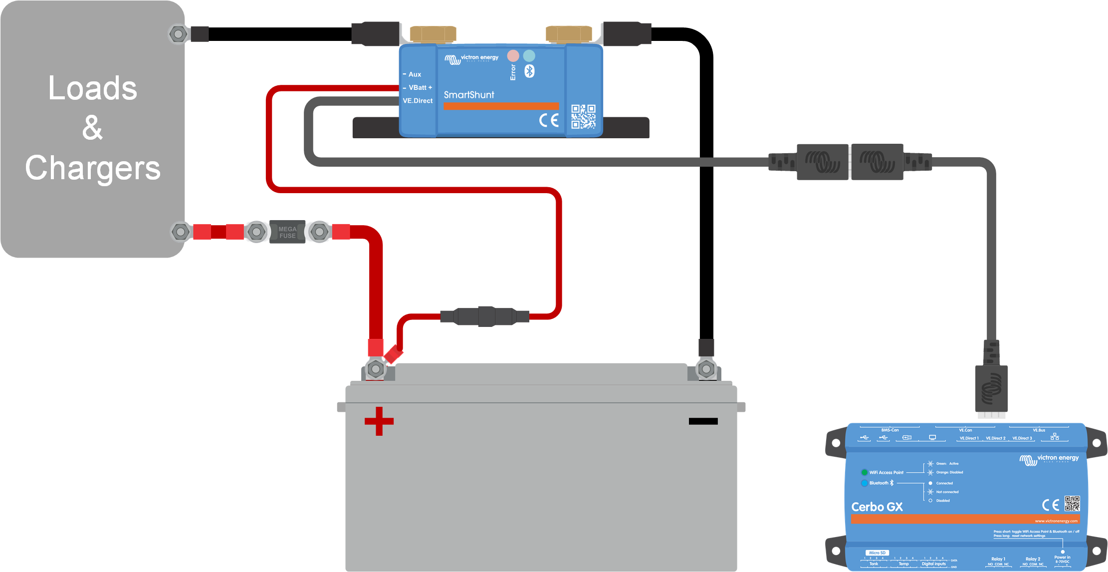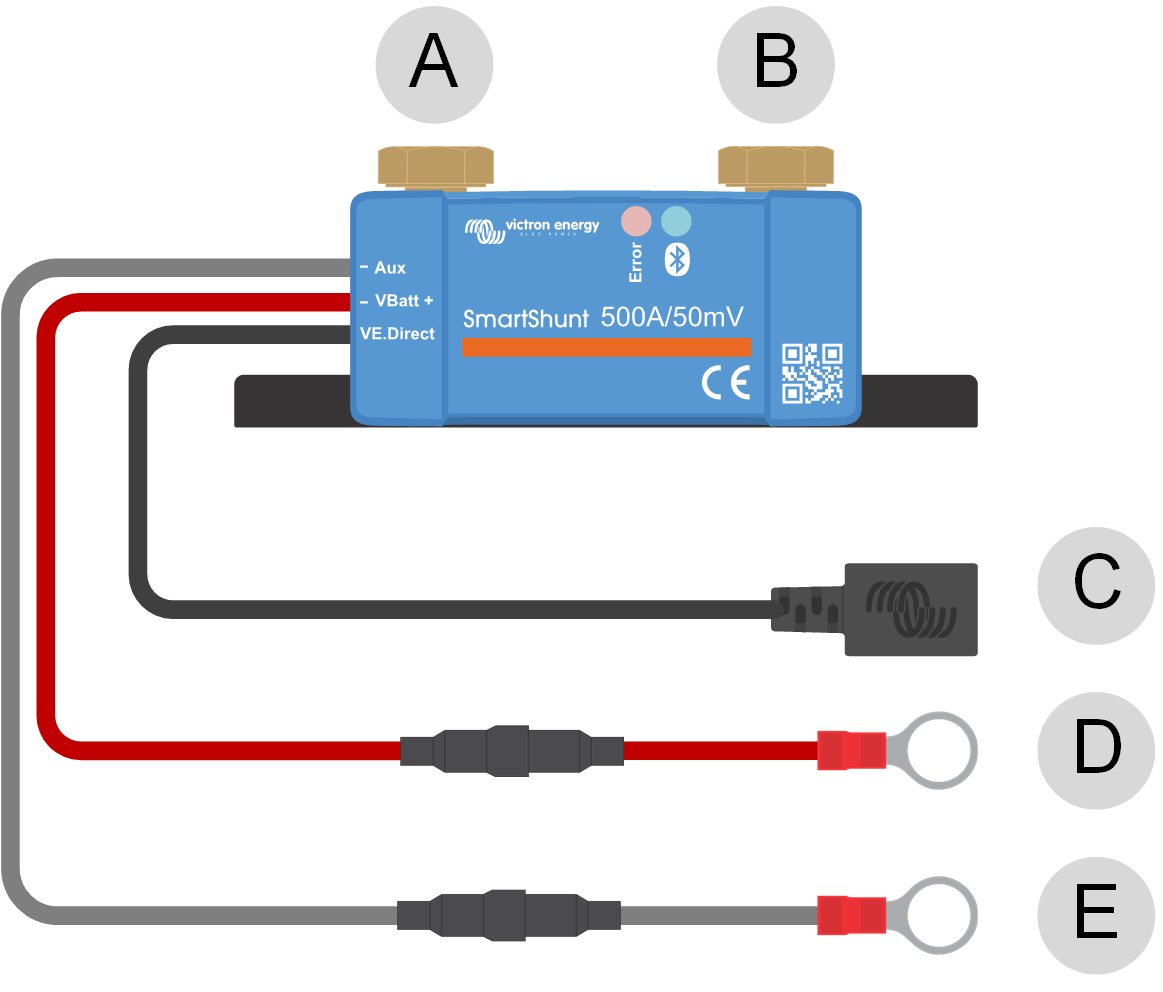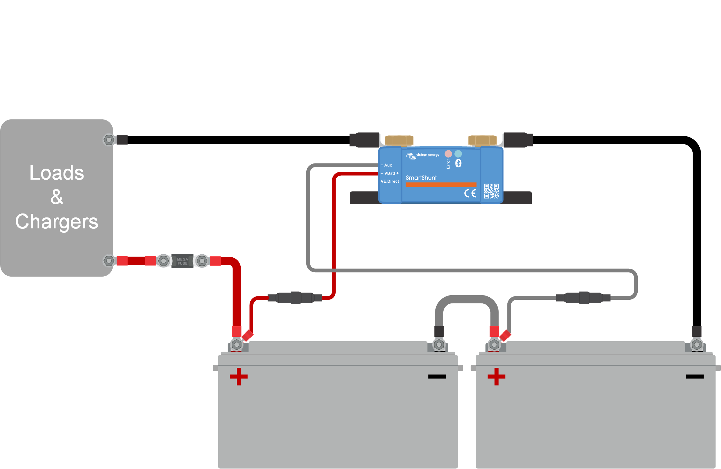 Rețineți că în această parte a șuntului, respectiv la borna negativă a bateriei nu trebuie să existe alte racorduri. Orice consumatori sau încărcătoare conectate aici vor fi excluse din calcularea stării de încărcare a bateriei.