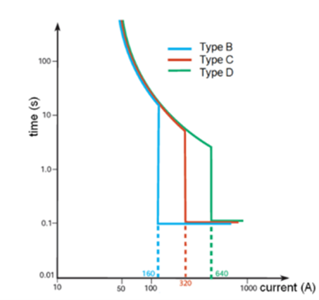 MCBs gibt es in drei Ausführungen: B, C und D. Sie alle haben die gleichen thermischen Eigenschaften. Sie haben jedoch unterschiedliche Kurzschlussstrompegel.