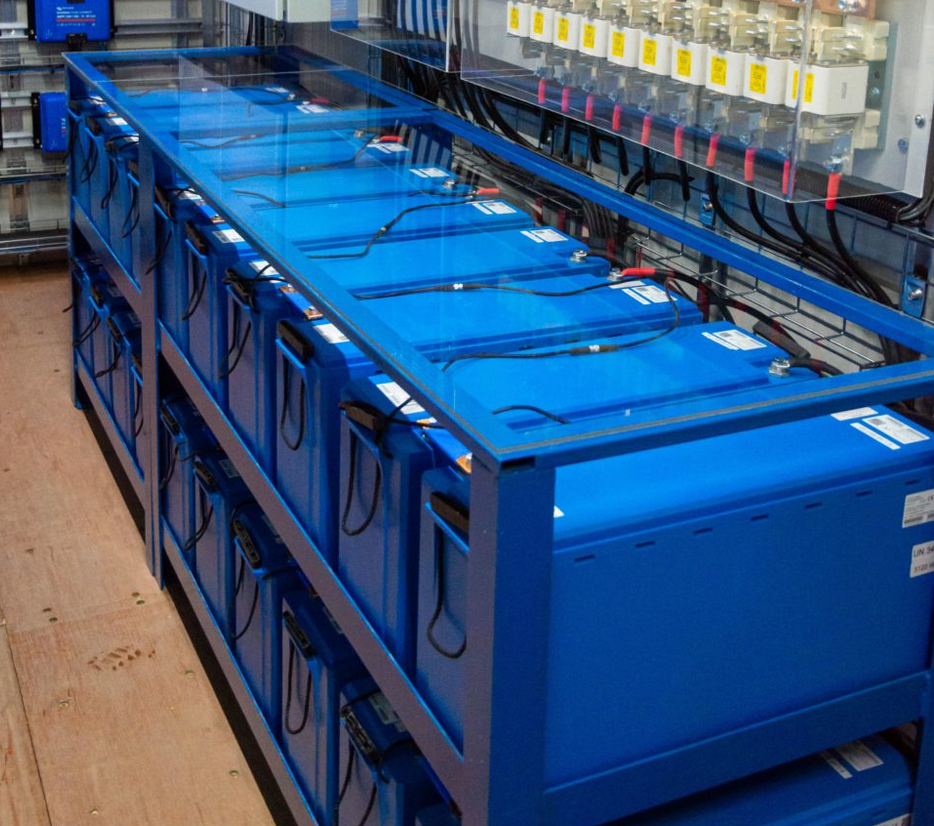Beispiele für große Batteriebänke mit 2 V-Blei-Säure-Batterien oder Lithium-Batterien: | ||